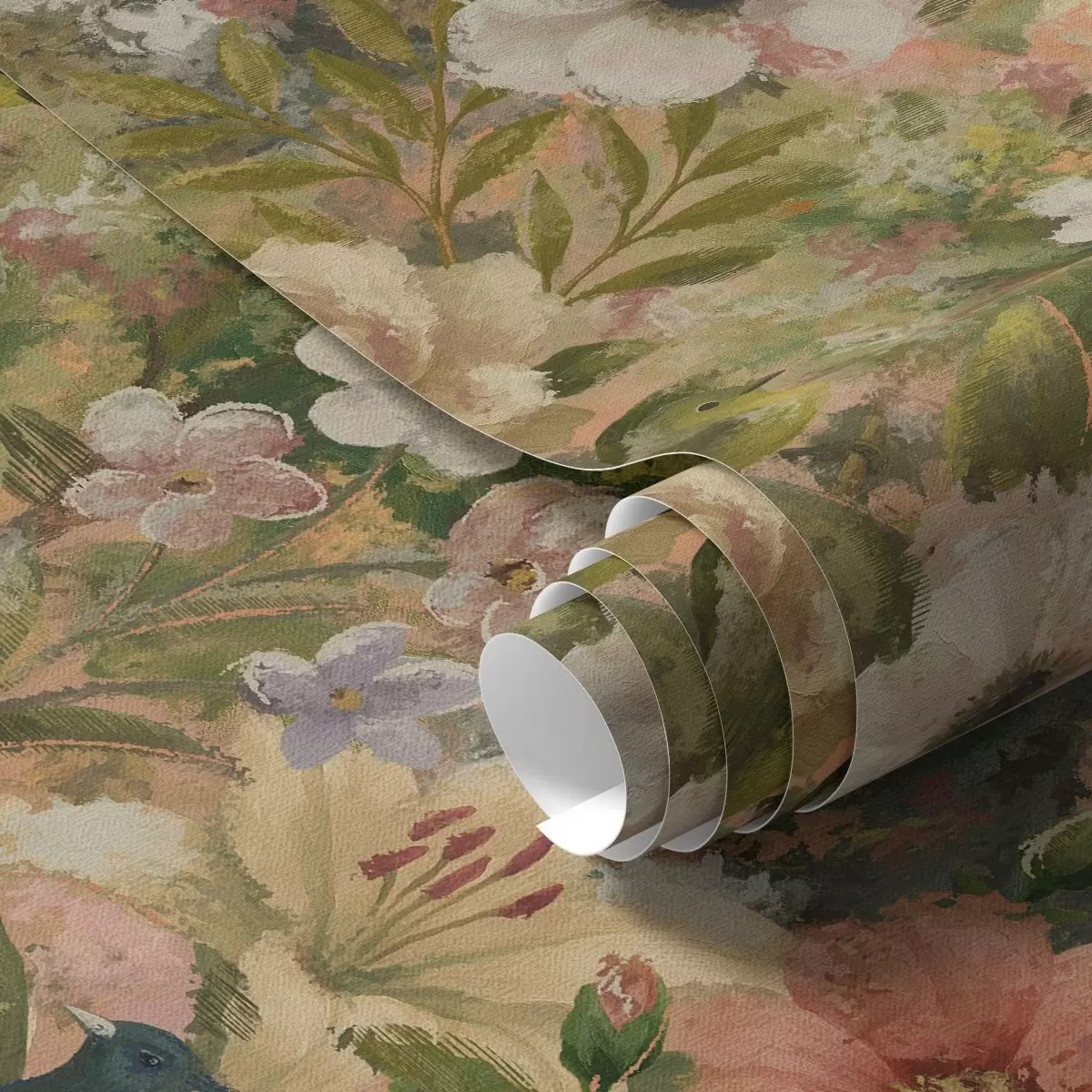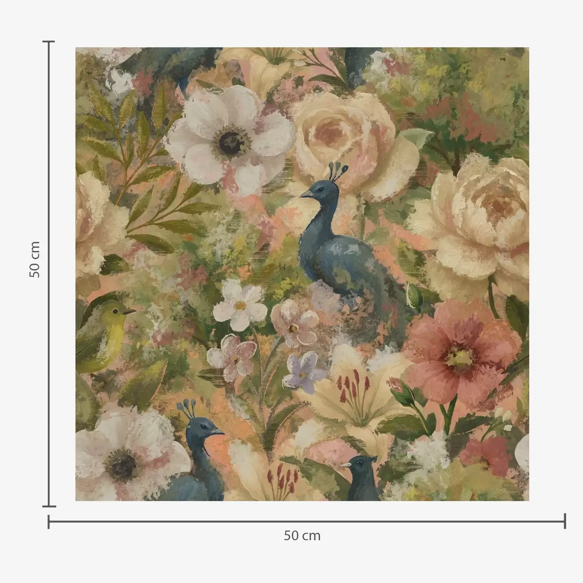 Papel tapiz Jardín pintoresco con pavos reales y flores grandes Nr. a00885