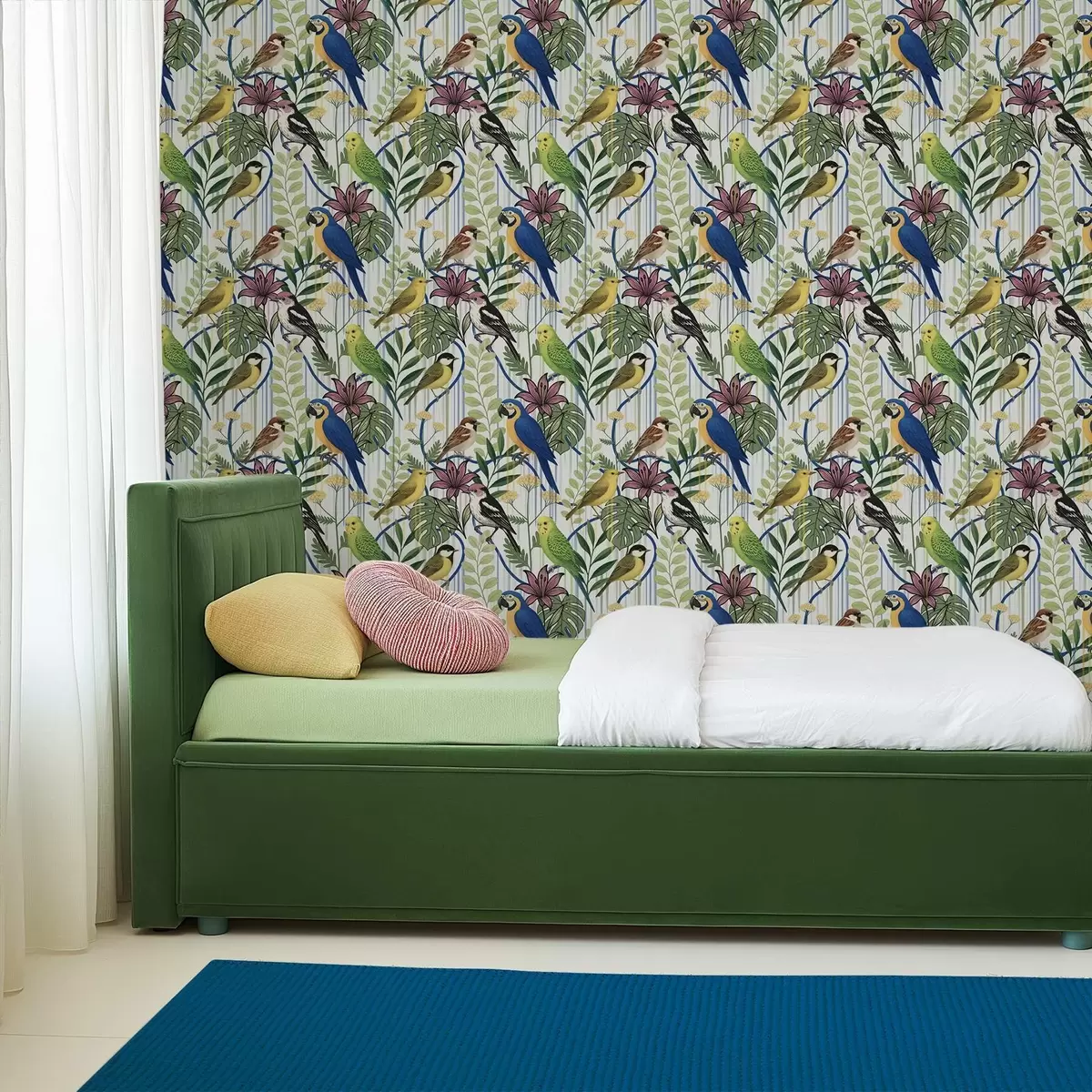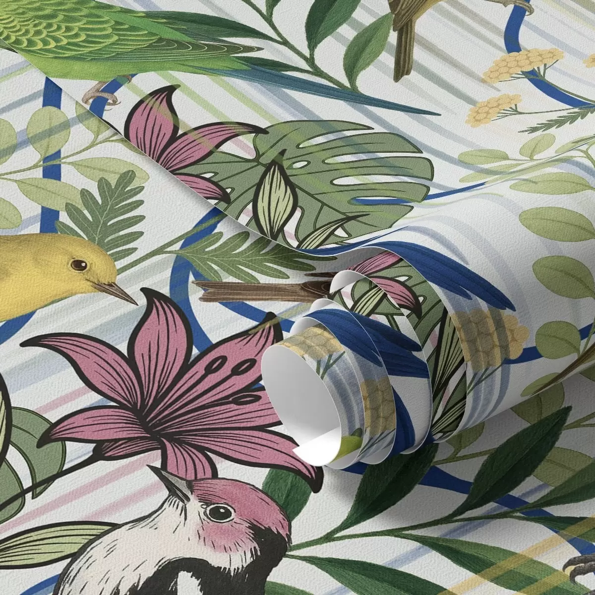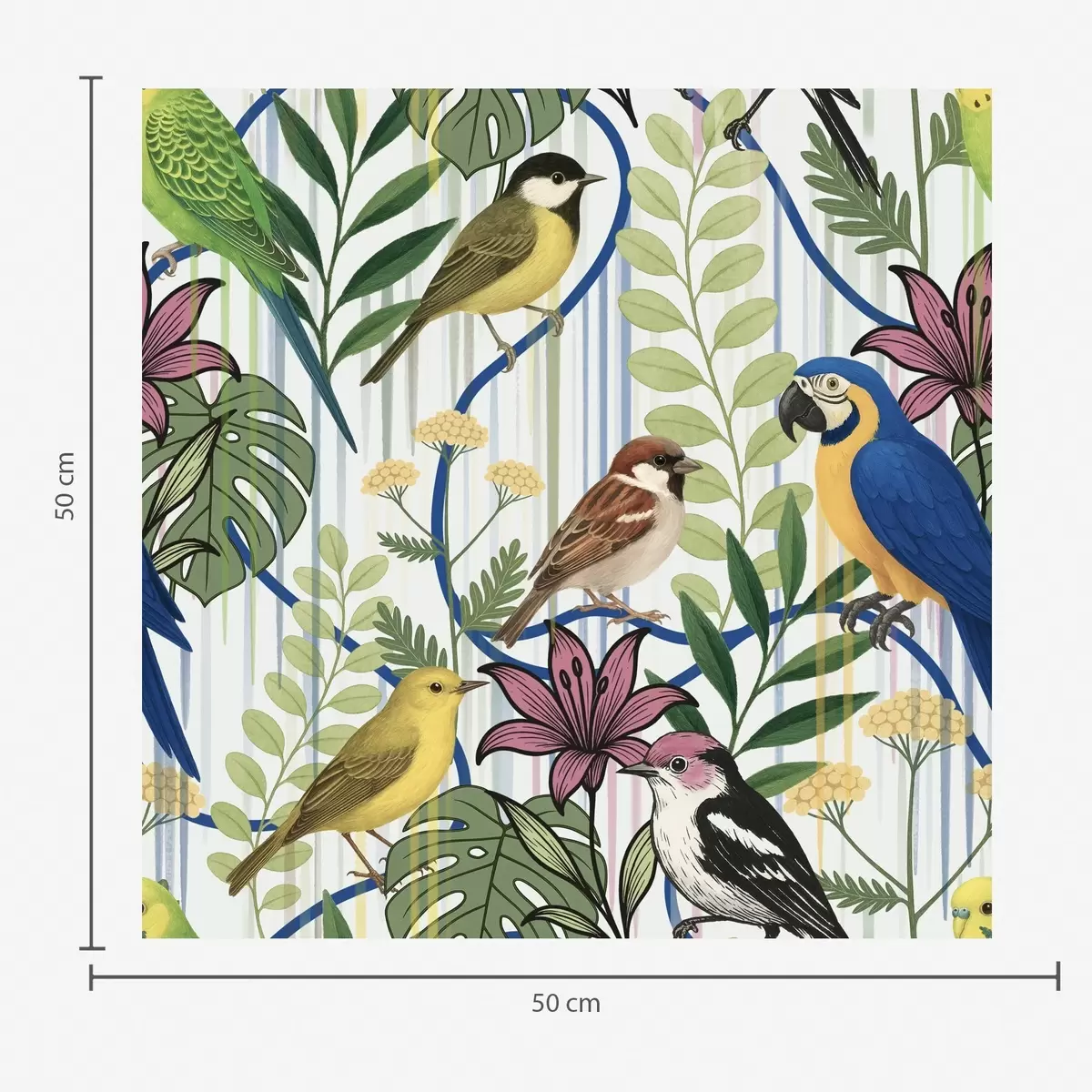 Papel tapiz Alegres aves exóticas entre la vegetación tropical Nr. a00887