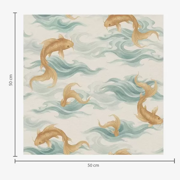 Papel tapiz Peces koi ámbar nadando entre suaves olas turquesas. Nr. a00894