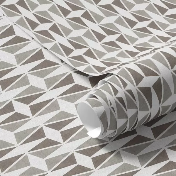 Papel tapiz Teselado de rombos en tonos gris topo y blanco, estilo de mediados de siglo. Nr. a00905