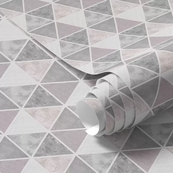 Papel tapiz Patrón geométrico de triángulos en tonos grises y empolvados. Nr. a00920