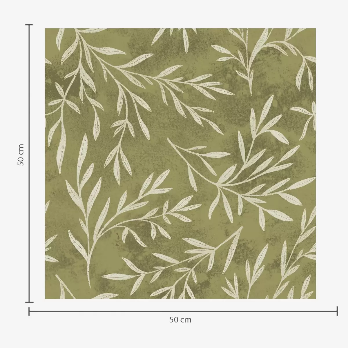 Papel tapiz Ramitas de color blanco crema sobre un fondo cálido con textura oliva. Nr. a00936v1