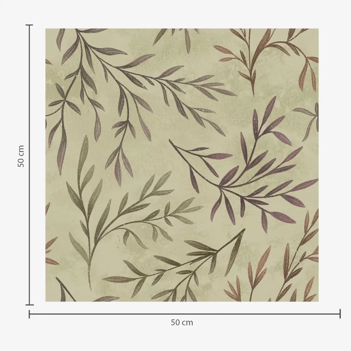 Papel tapiz Ramas de lila y verde con hojas sobre un fondo cálido Nr. a00936v4