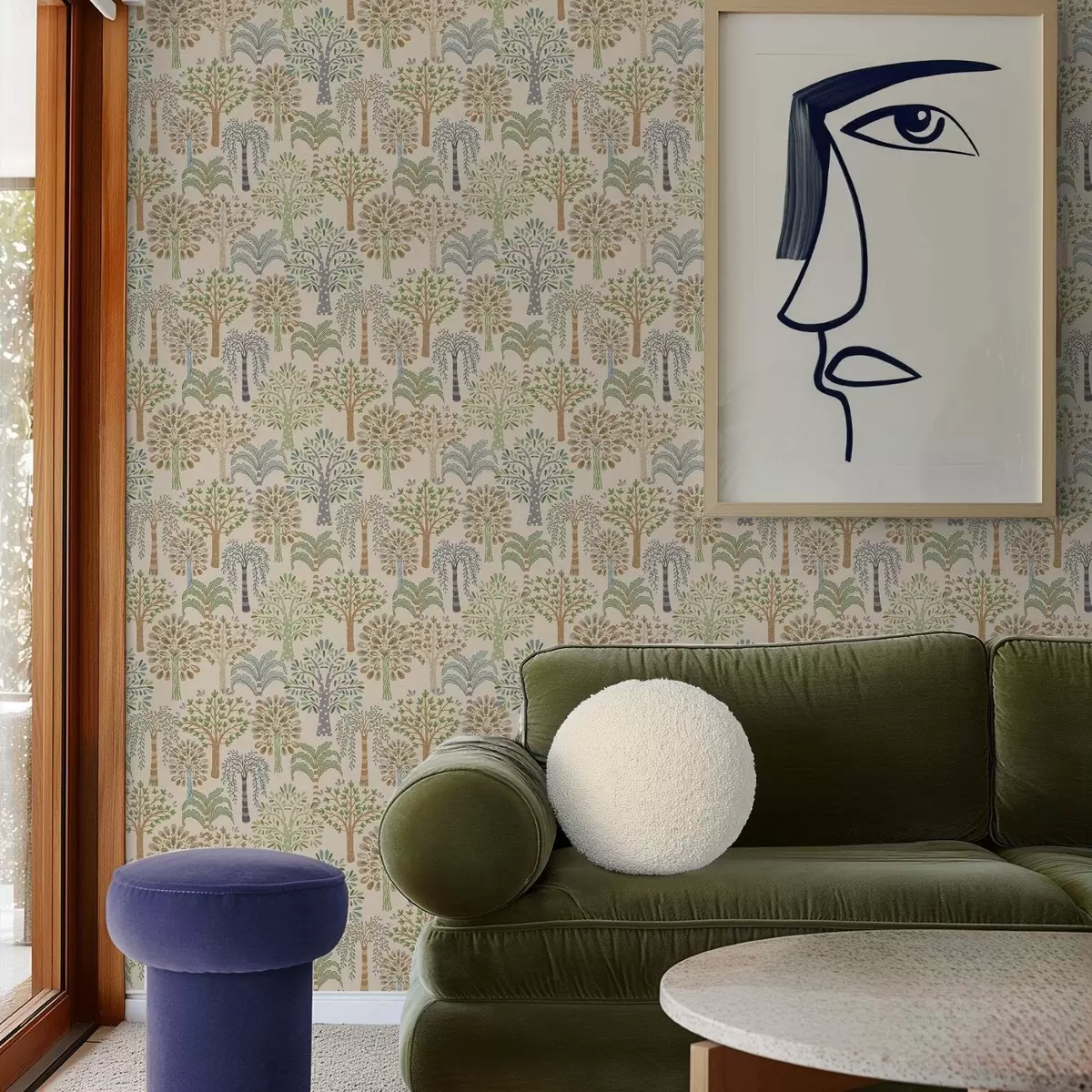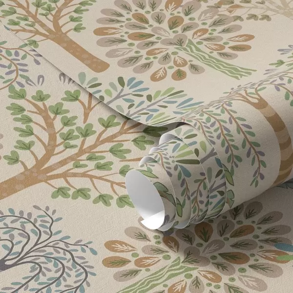Papel tapiz Árboles decorativos en una suave paleta natural Nr. a00960