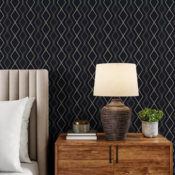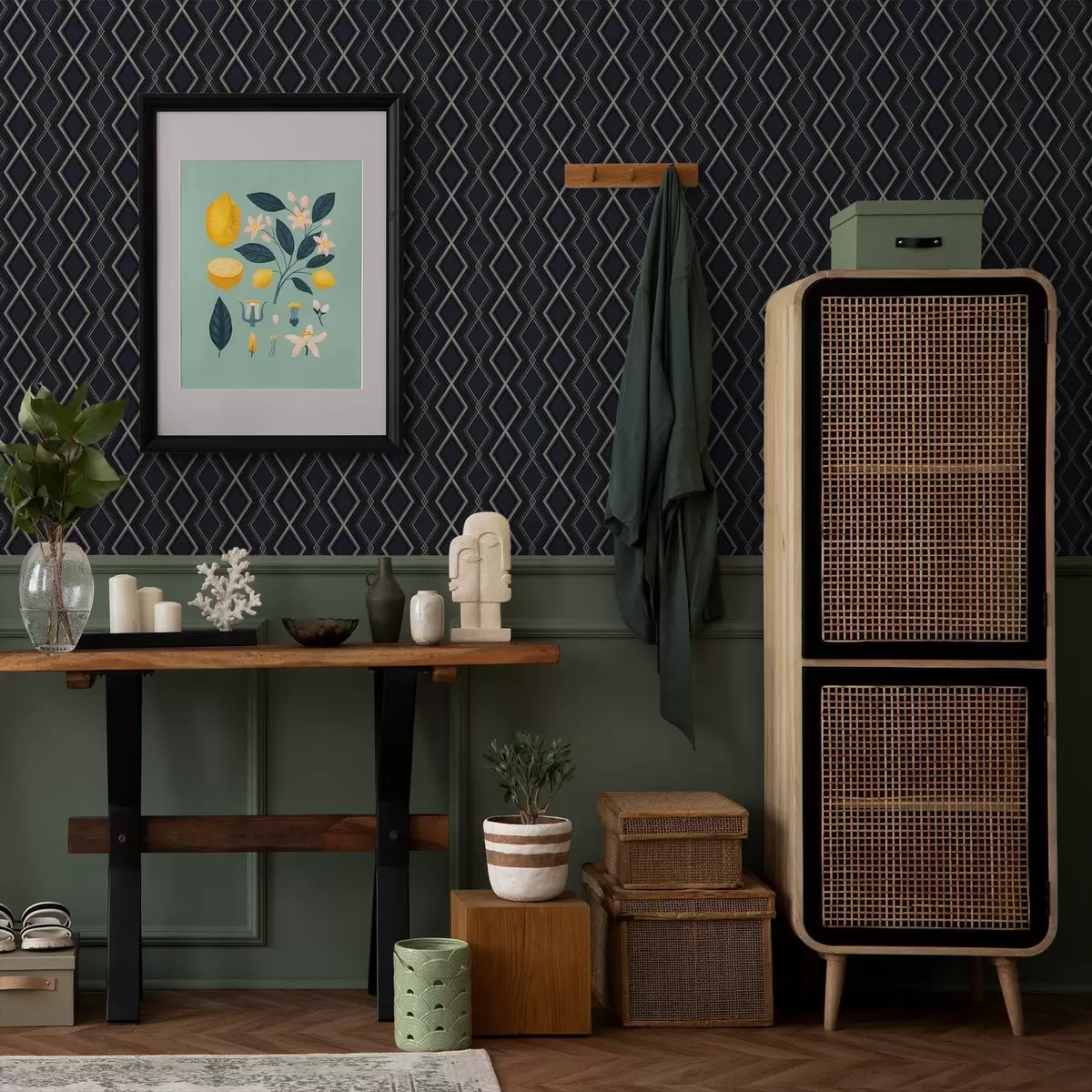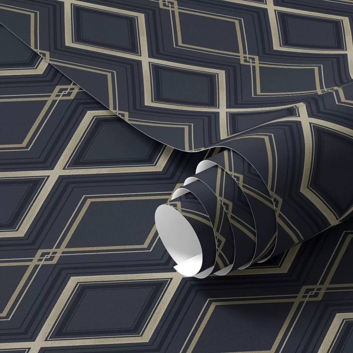 Papel tapiz Cuadrícula de rombos azul oscuro con finas líneas claras Nr. a00975