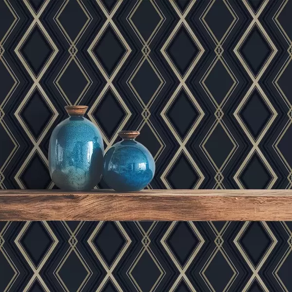 Papel tapiz Cuadrícula de rombos azul oscuro con finas líneas claras Nr. a00975