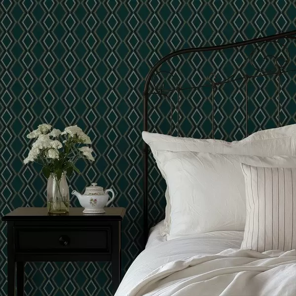Papel tapiz Fondo verde azulado oscuro con filas verticales de rombos Nr. a00976