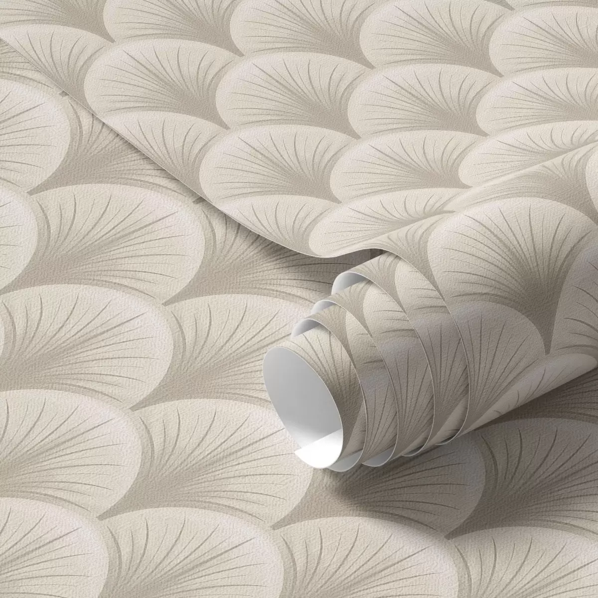 Papel tapiz Arcos de abanico beige con rayos finos sobre un fondo claro. Nr. a00978