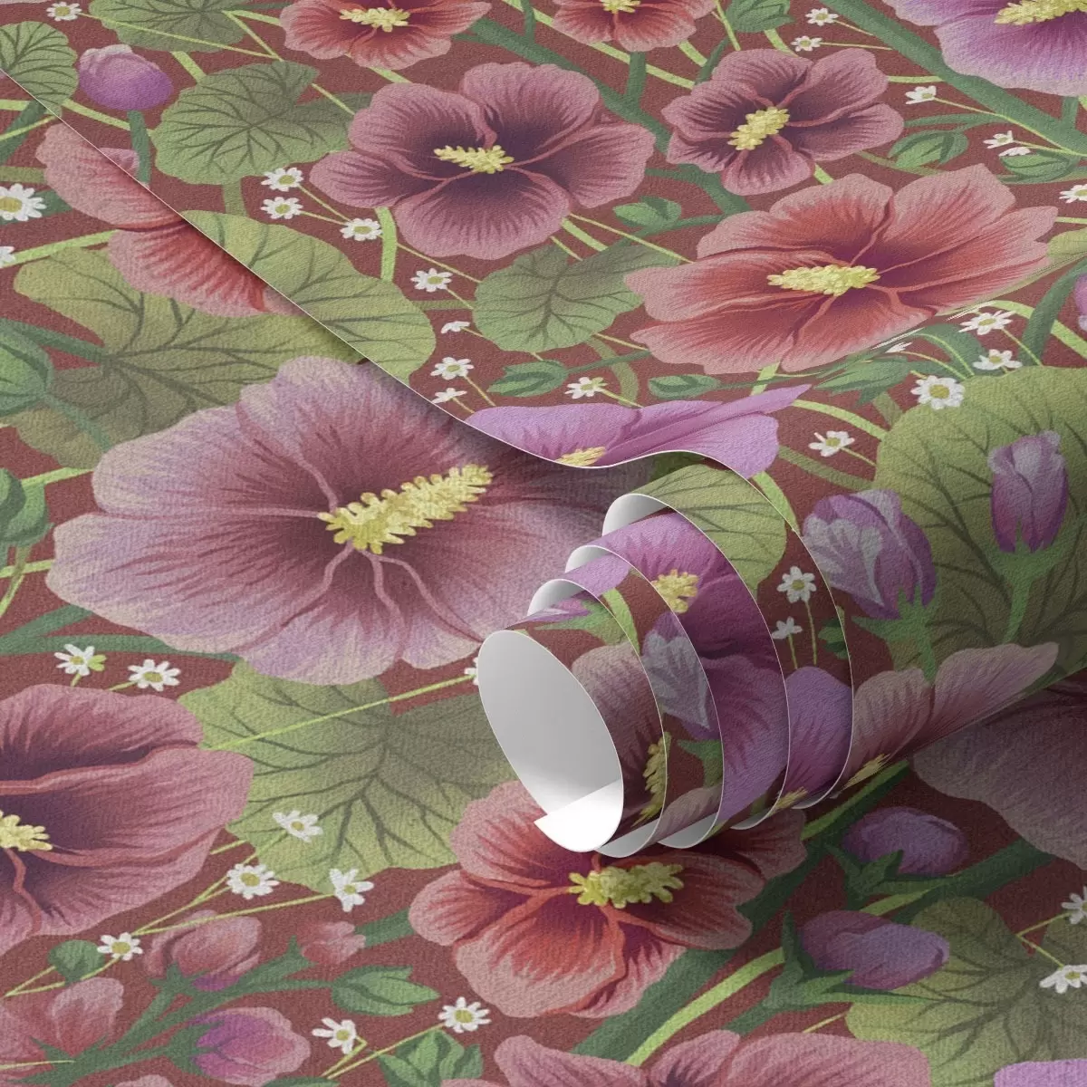 Papel tapiz Hibisco en flor sobre un cálido fondo marrón rojizo. Nr. a00993v1