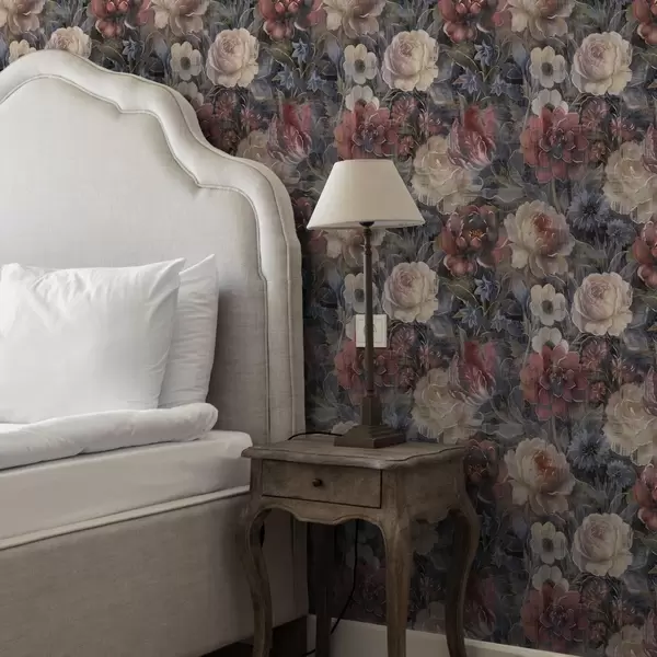 Papel tapiz Ramo pictórico de flores grandes sobre fondo índigo intenso Nr. a01021