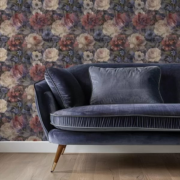Papel tapiz Ramo pictórico de flores grandes sobre fondo índigo intenso Nr. a01021