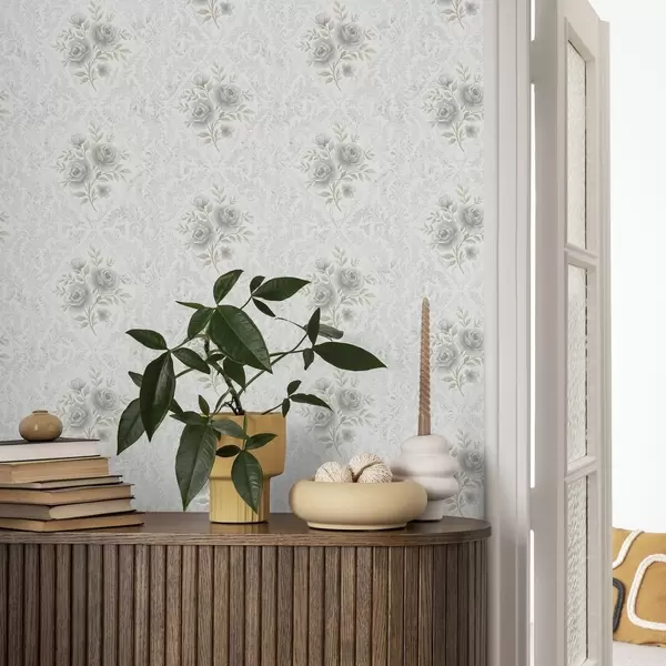 Papel tapiz Diseño damasco claro con rosas grises en rombos suaves Nr. a01024