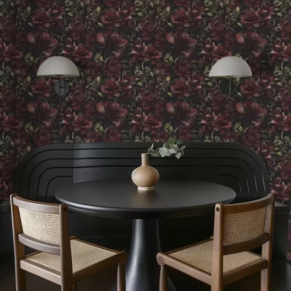 Papel tapiz Ricas flores burdeos sobre fondo oscuro Nr. a01032