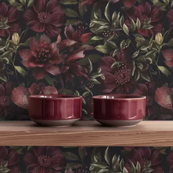 Papel tapiz Ricas flores burdeos sobre fondo oscuro Nr. a01032
