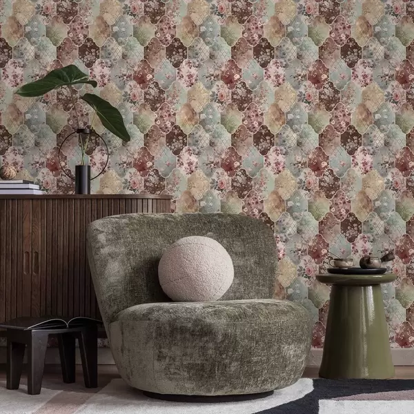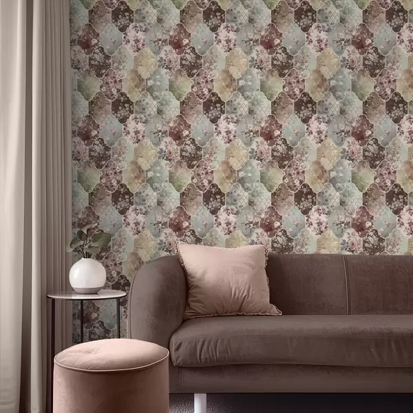 Papel tapiz Mosaico de paneles florales y azulejos desgastados con motivos decorativos Nr. a01038