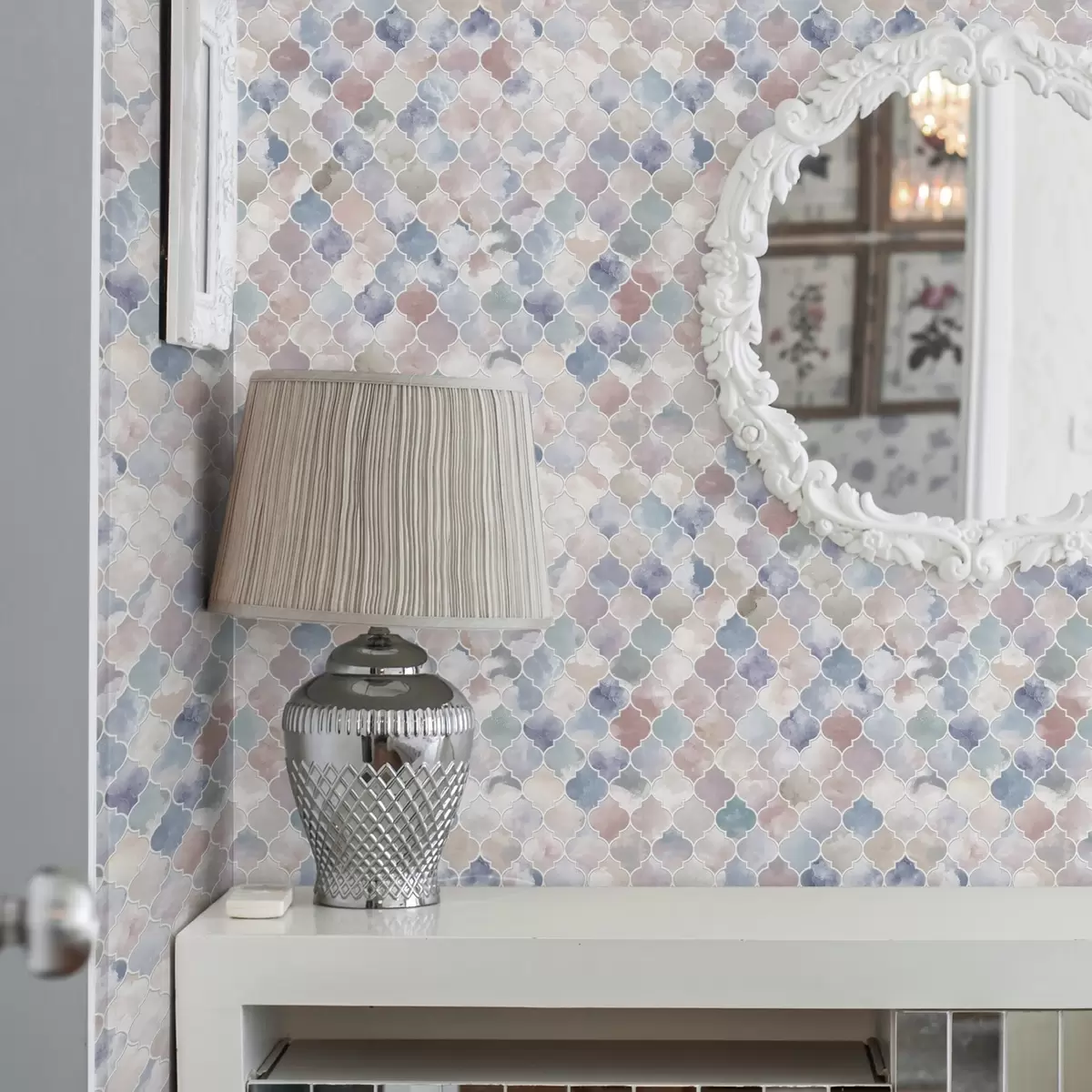 Papel tapiz Mosaico en tonos pastel claros con suaves formas marroquíes. Nr. a01039v1