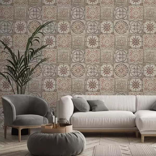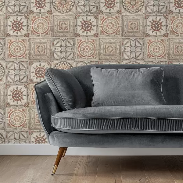 Papel tapiz Medallones antiguos de mosaico de piedra con detalles desgastados Nr. a01042