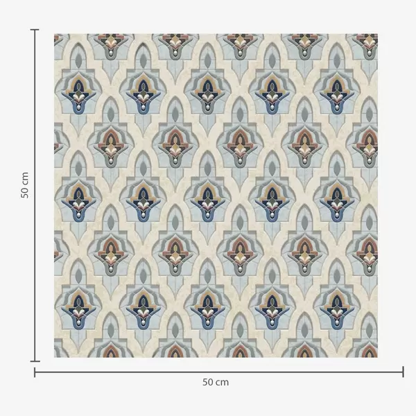 Papel tapiz Patrón oriental de azulejos pequeños en una paleta de colores azul y arena. Nr. a01044