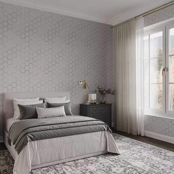 Papel tapiz Hexágonos tridimensionales blancos sobre un fondo liso Nr. a01059