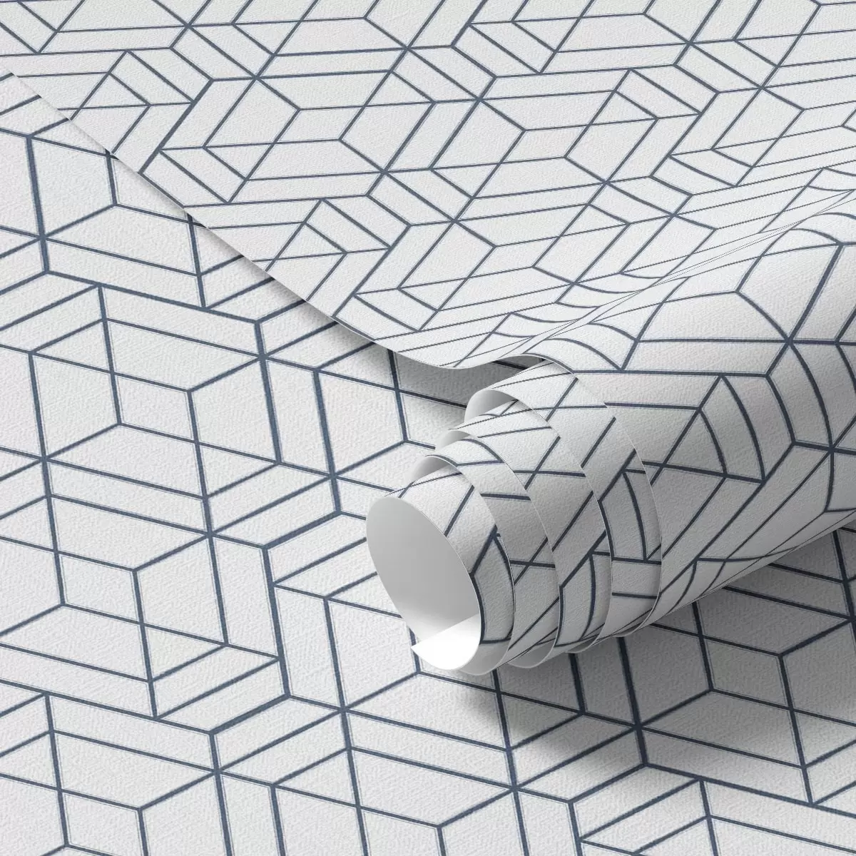 Papel tapiz Fondo blanco con cubos geométricos tridimensionales azules. Nr. a01067