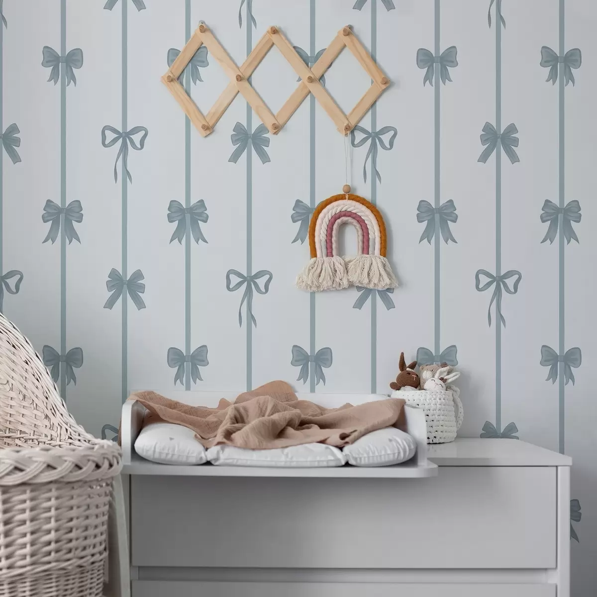 Papel tapiz Lazos azules con cintas sobre un fondo claro Nr. a01074v2