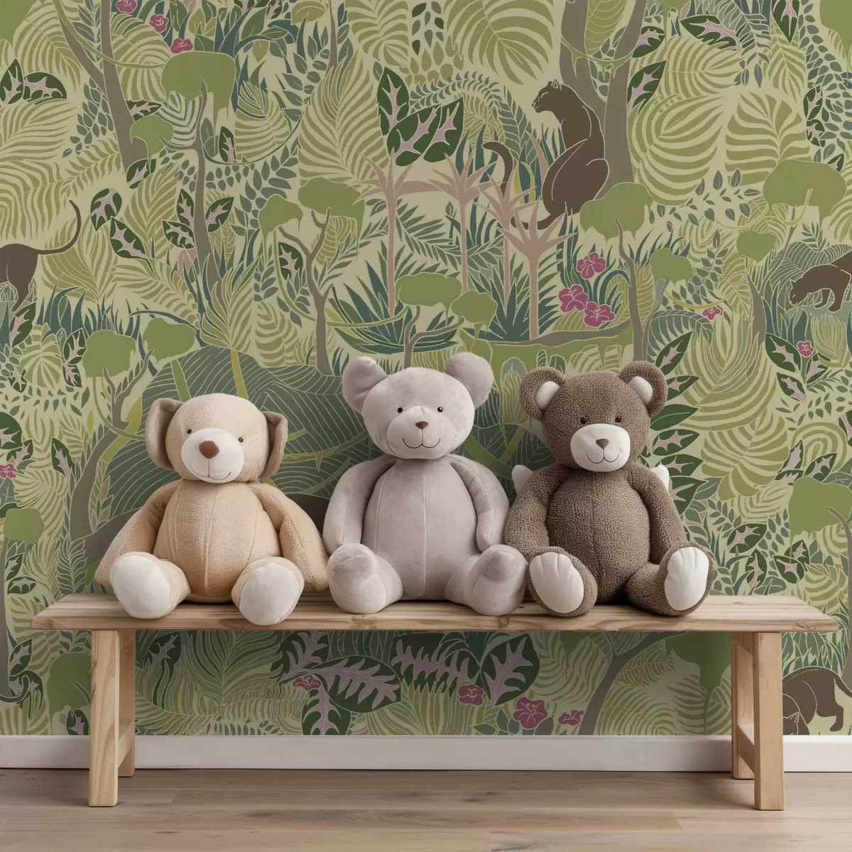 Papel tapiz Escena forestal con animales y follaje denso Nr. a01108