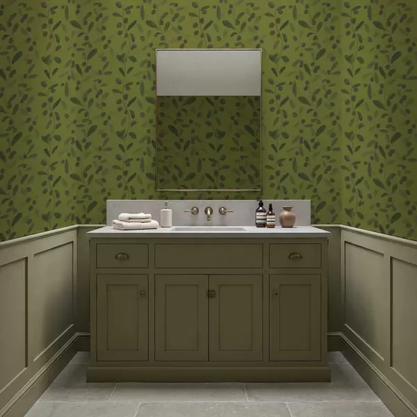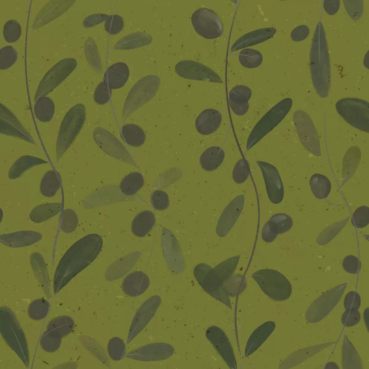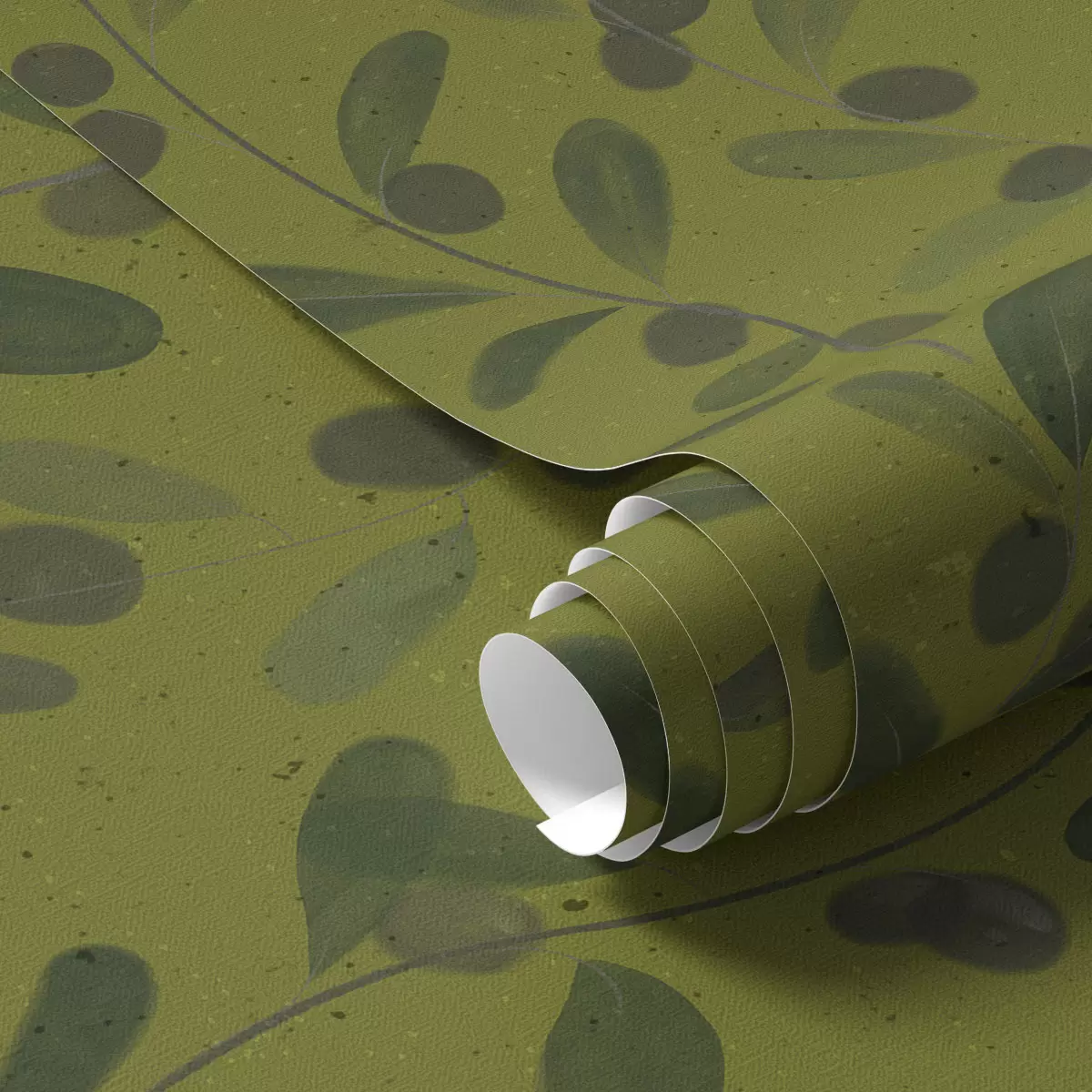 Papel tapiz Ramas verdes con hojas y bayas en olivo Nr. a01113
