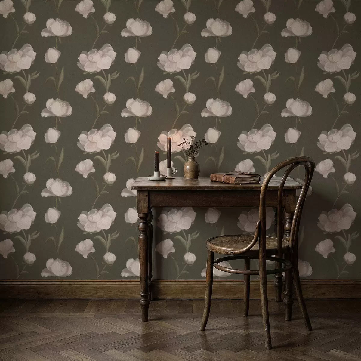 Papel tapiz Peonías de color rosa suave sobre fondo oscuro Nr. a01114v1