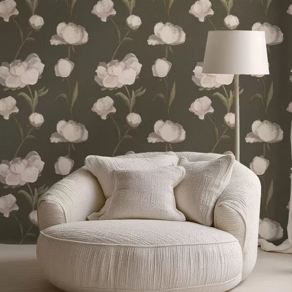 Papel tapiz Peonías de color rosa suave sobre fondo oscuro Nr. a01114v1
