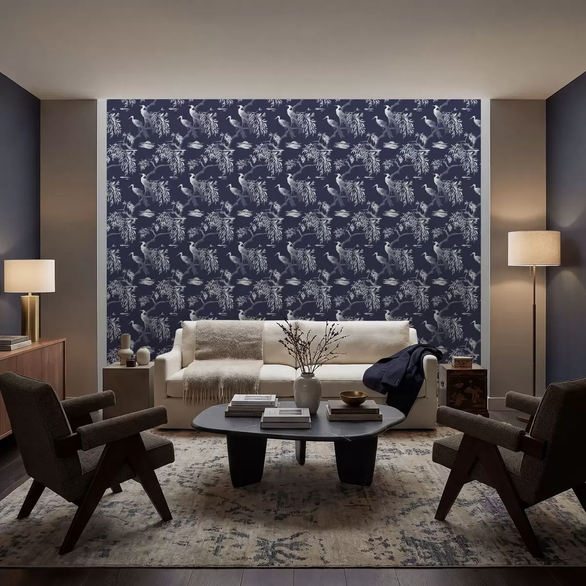 Papel tapiz Pájaros en una rama sobre fondo azul oscuro Nr. a01116v1