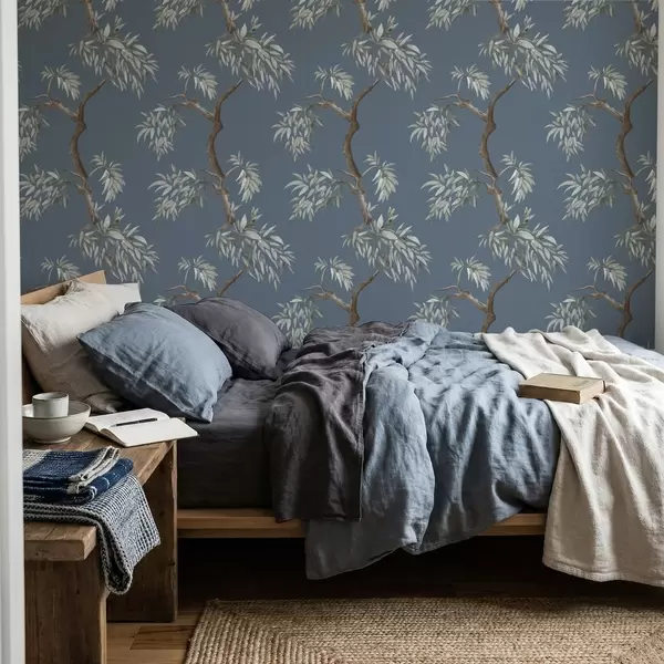 Papel tapiz Rama de árbol con hojas sobre fondo azul Nr. a01117