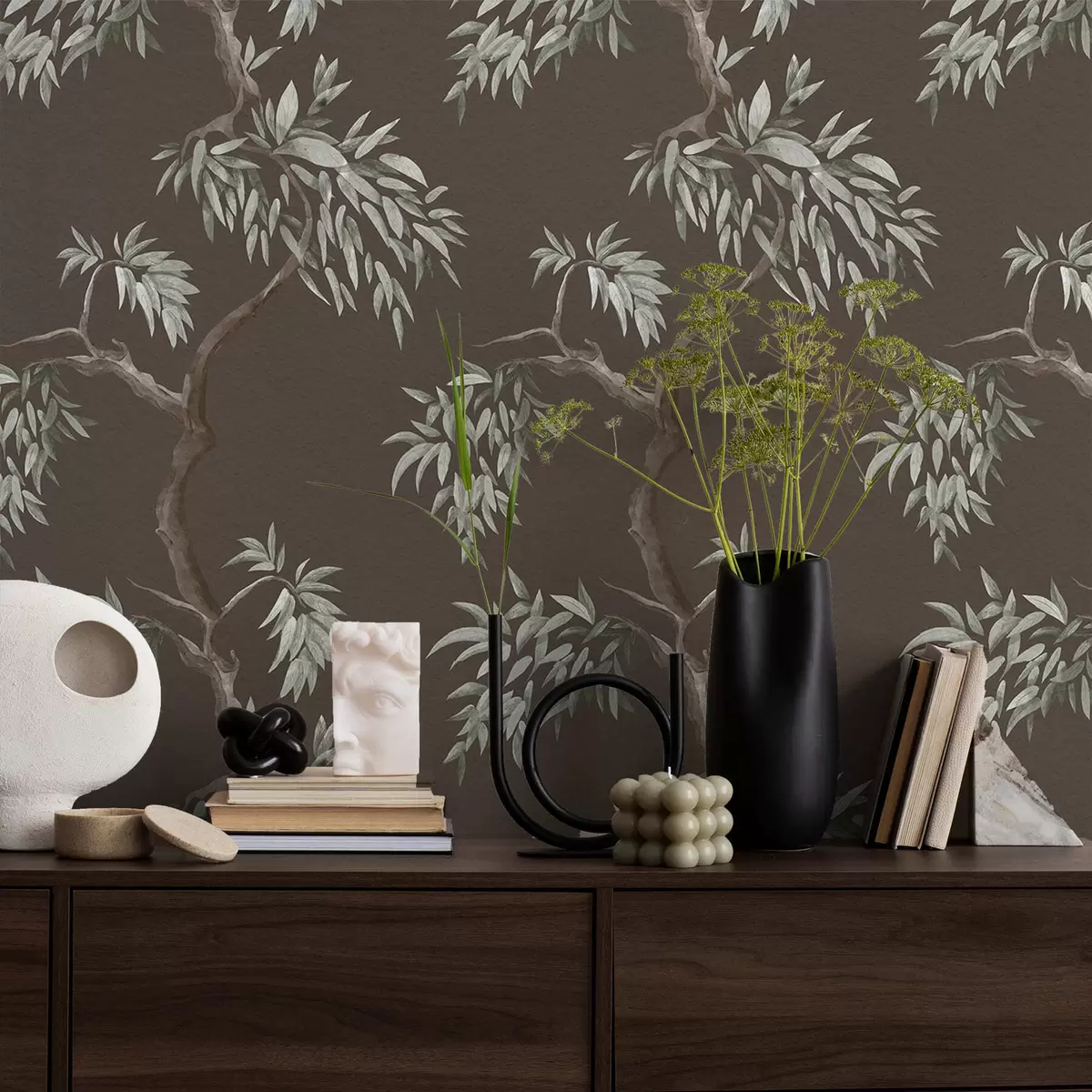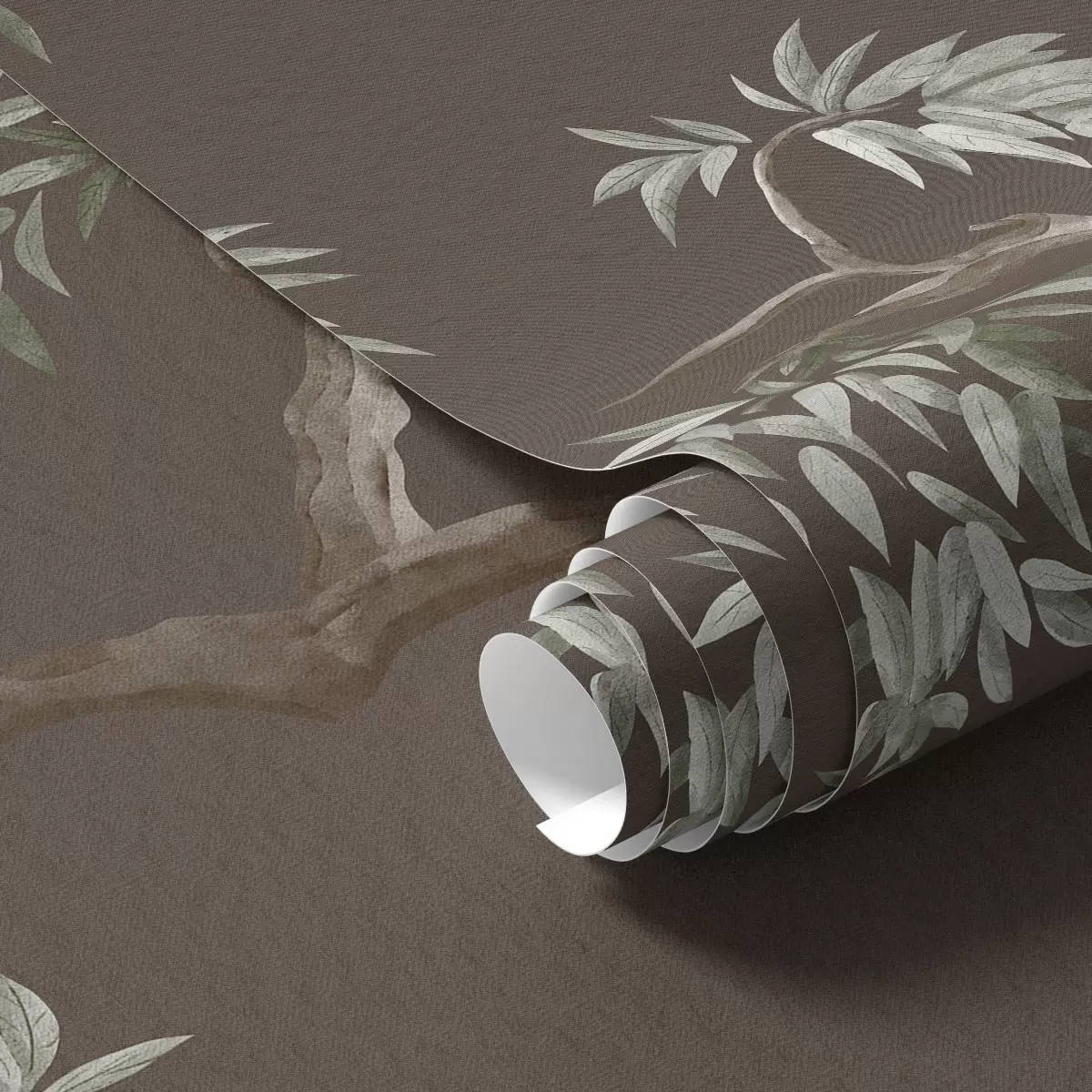 Papel tapiz Rama de árbol con hojas sobre fondo marrón Nr. a01117v3