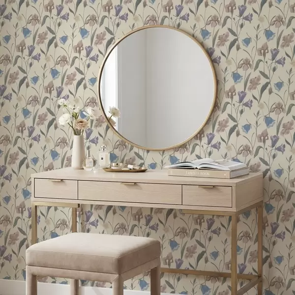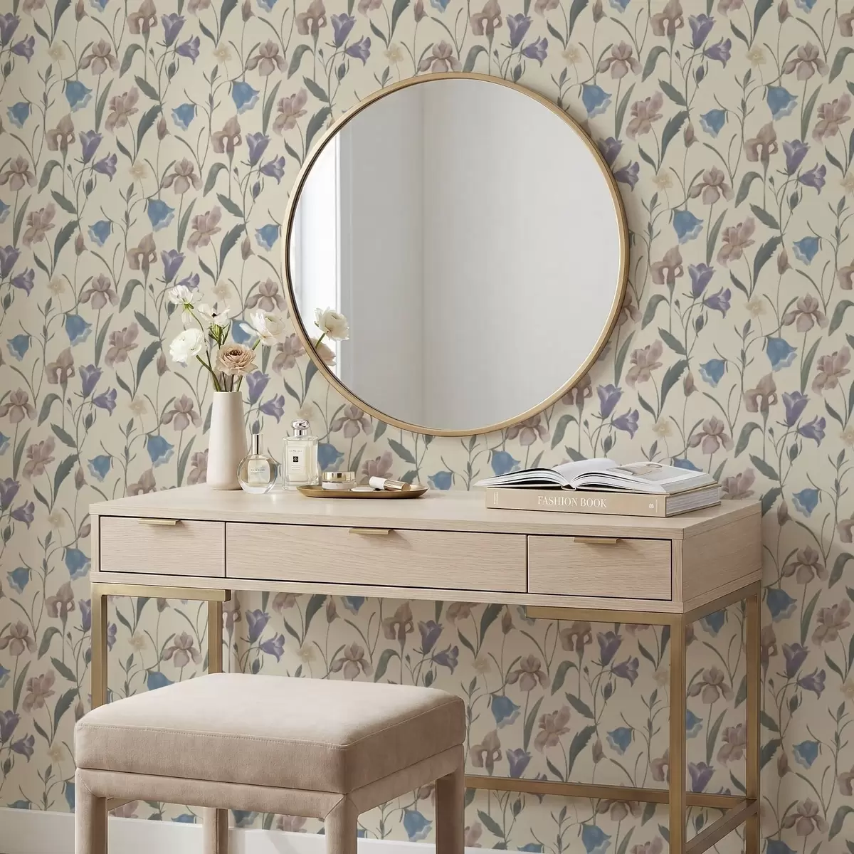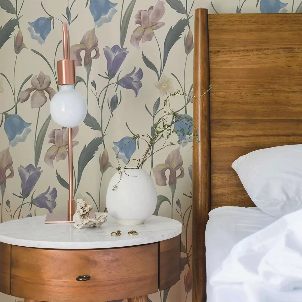 Papel tapiz Estampado floral en tonos pastel sobre fondo claro. Nr. a01118