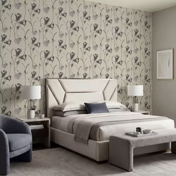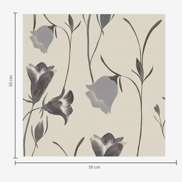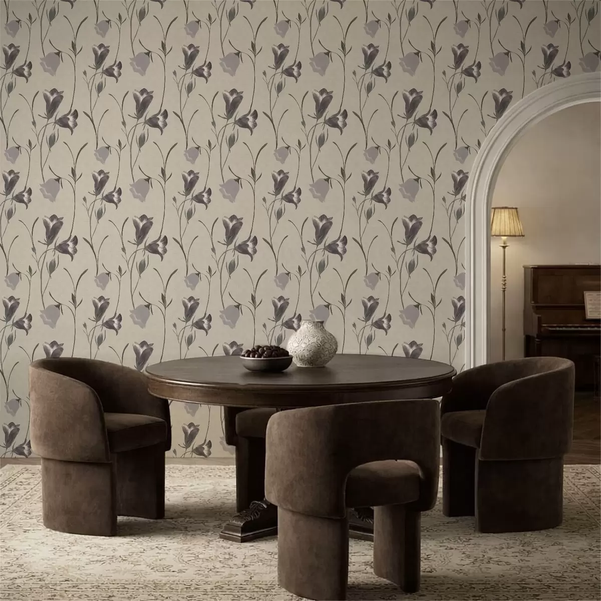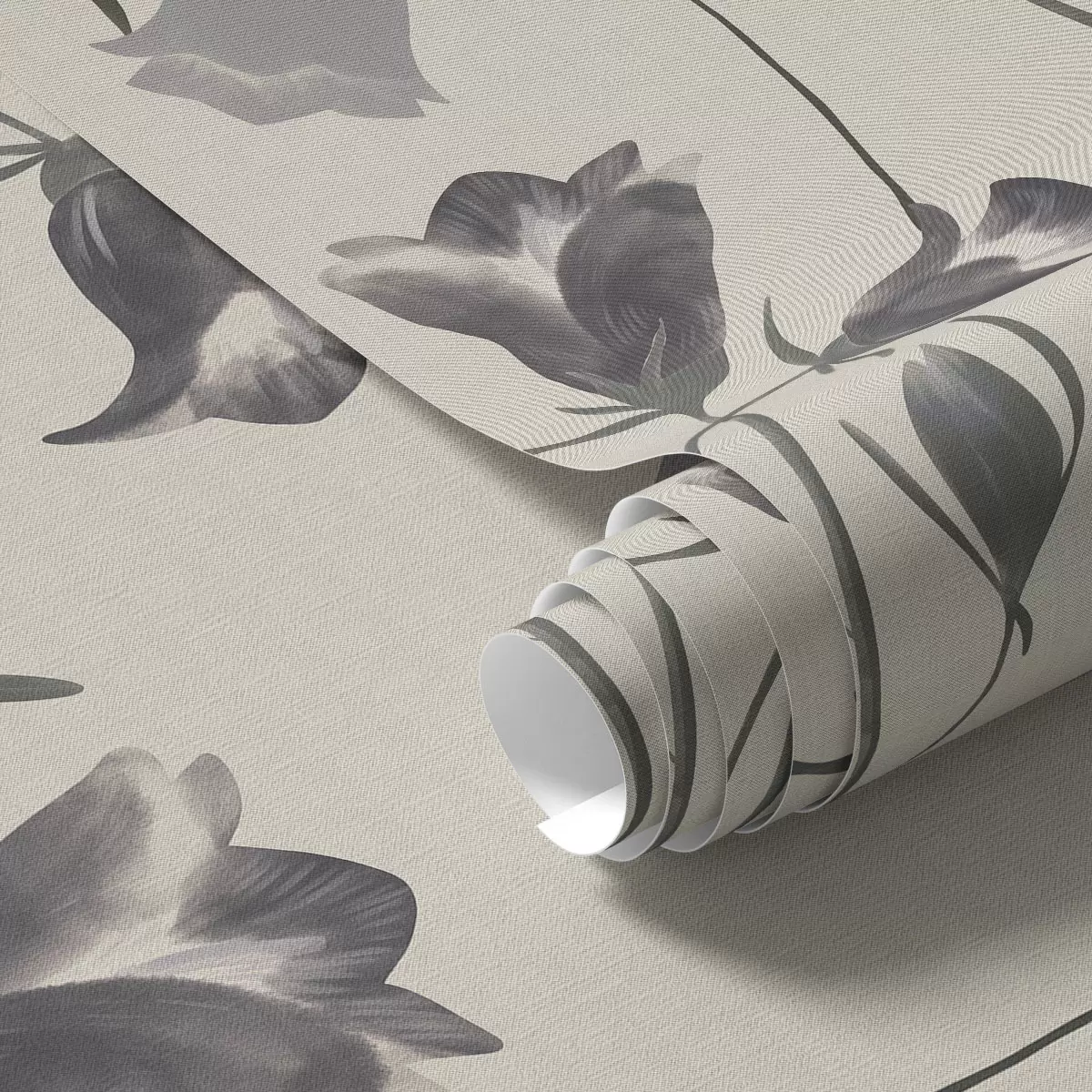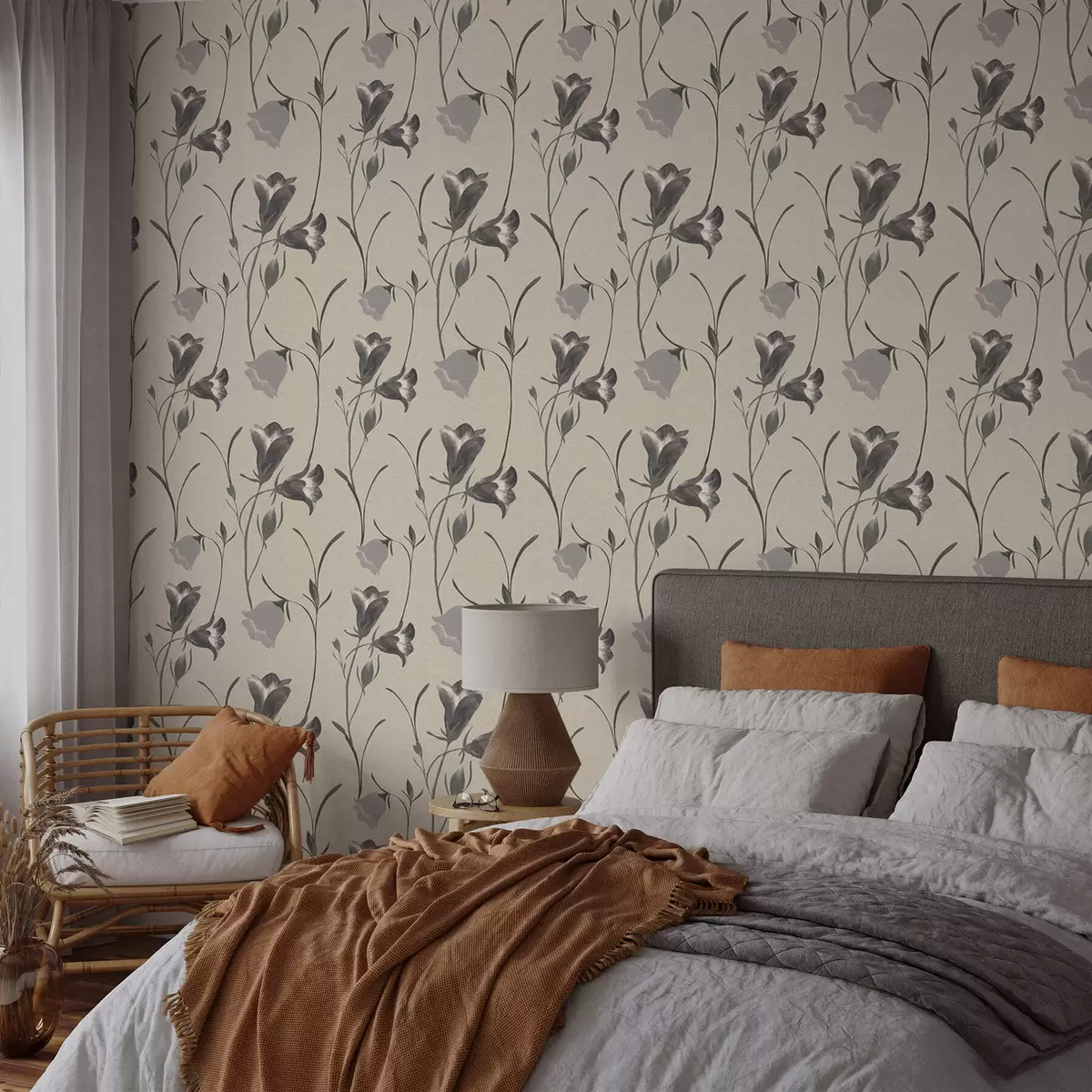 Papel tapiz Flores grises en forma de campana sobre fondo beige claro. Nr. a01119