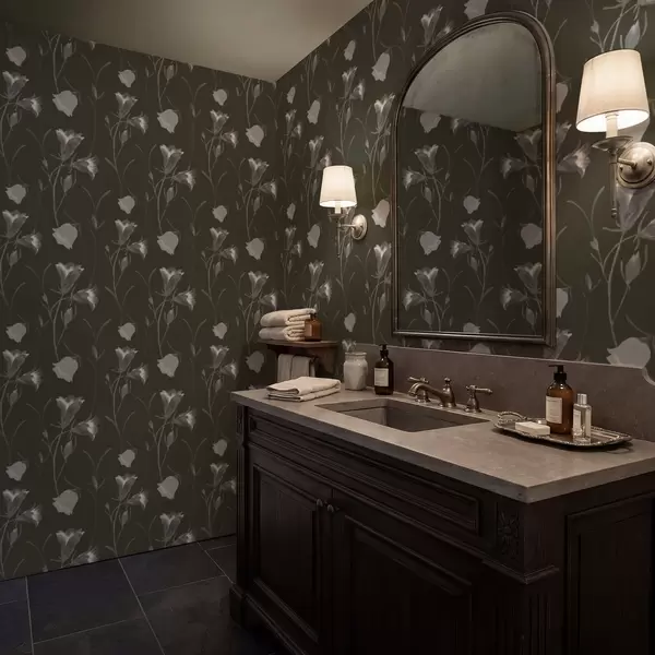 Papel tapiz Flores grises en forma de campana sobre fondo oscuro Nr. a01119v1