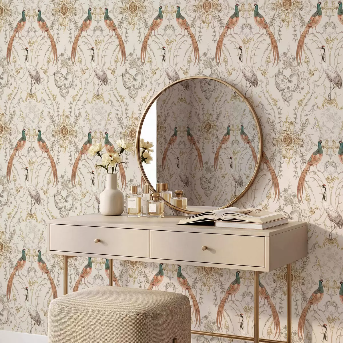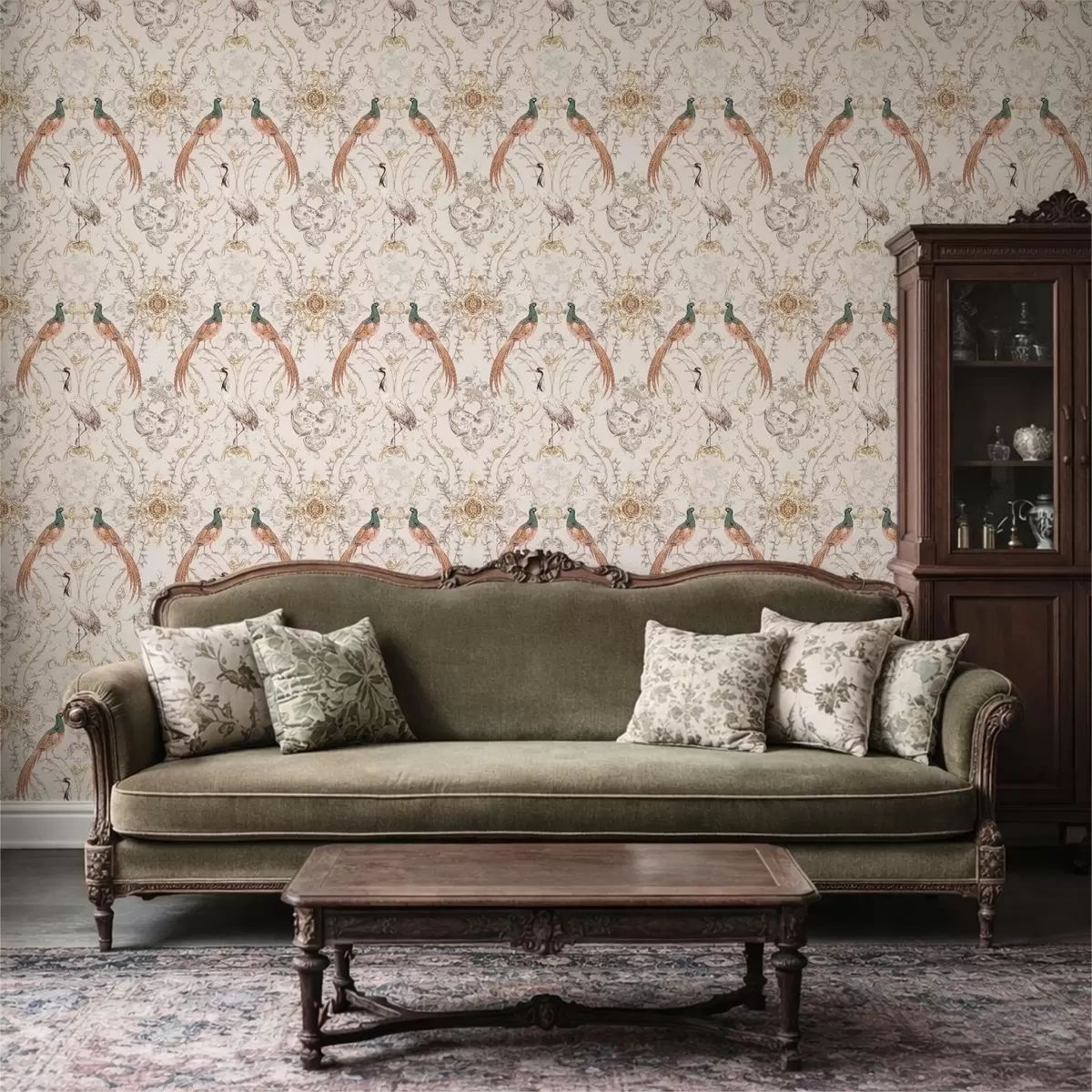 Papel tapiz Diseño ornamental con pájaros y motivos Nr. a01156