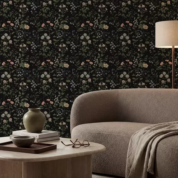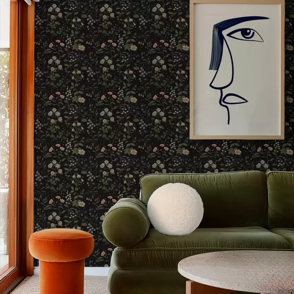 Papel tapiz Diseño floral sobre fondo negro con estrellas Nr. a01160