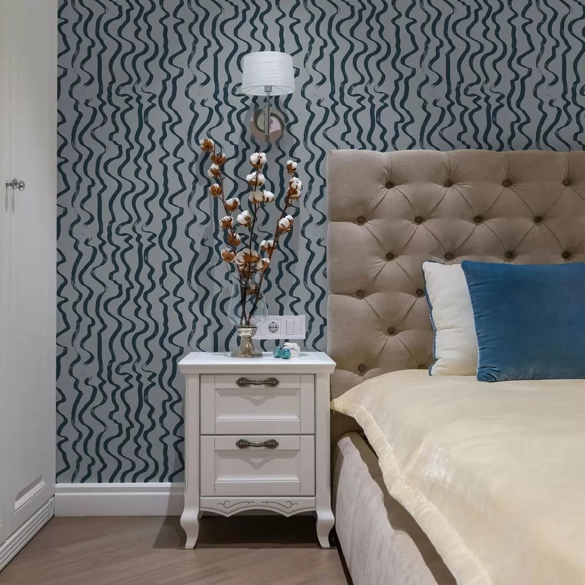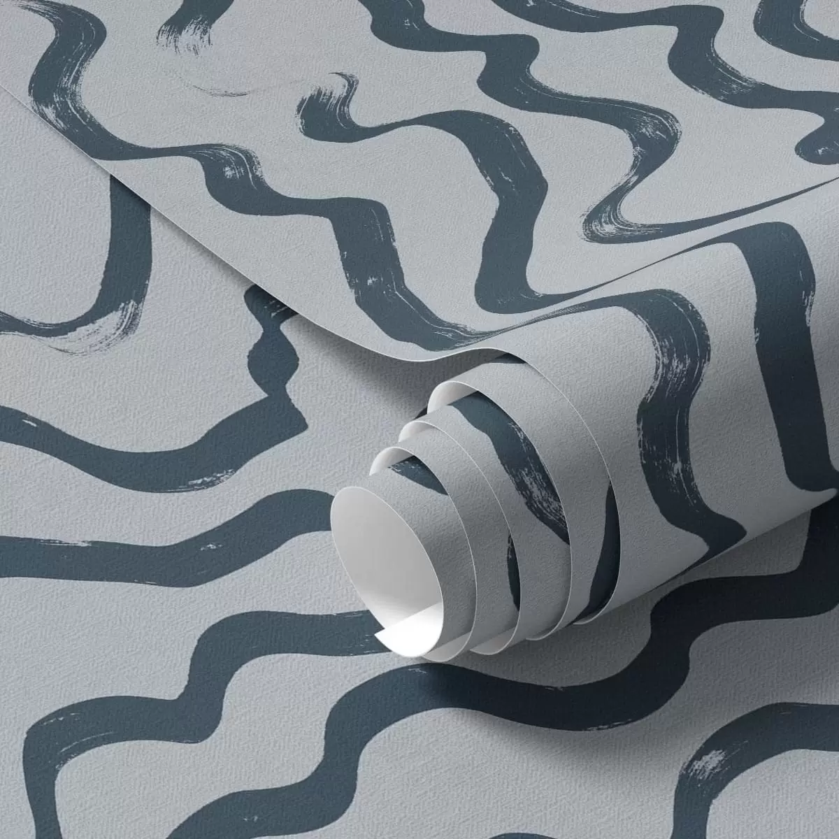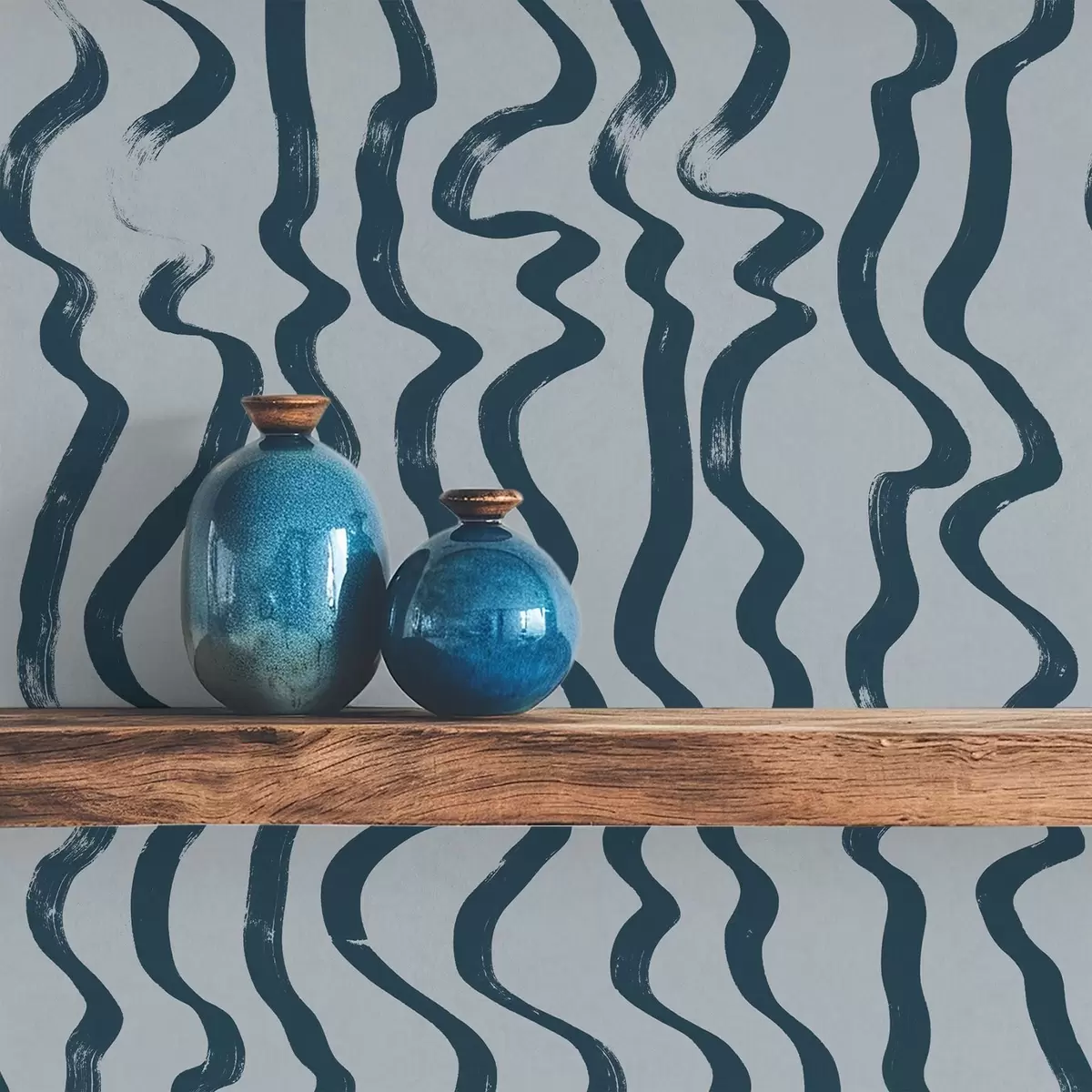Papel tapiz Líneas onduladas oscuras sobre fondo azul Nr. a01168v1