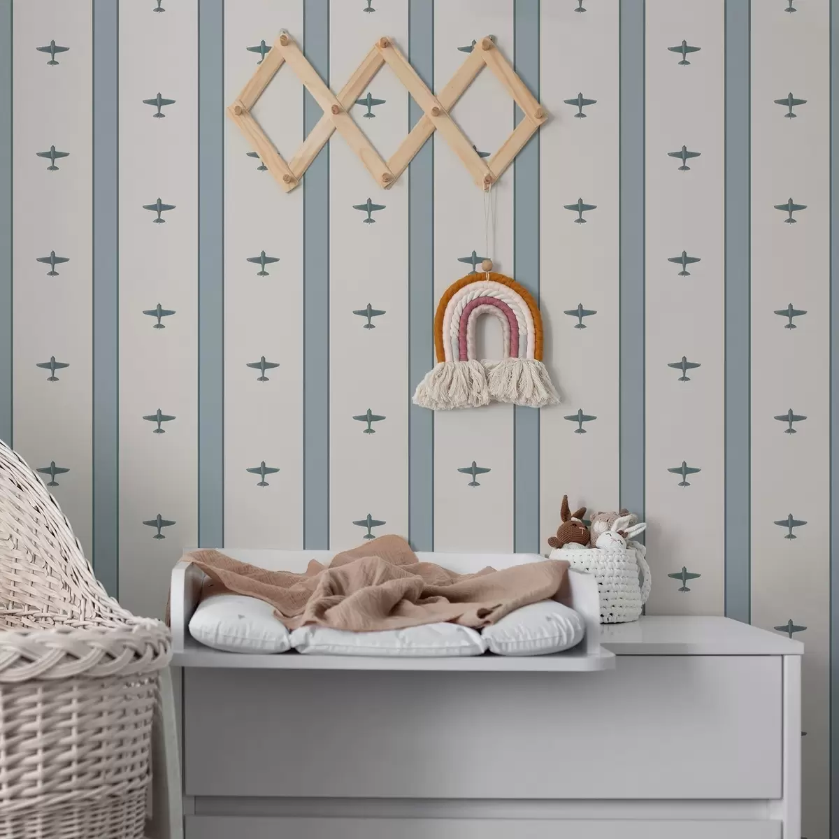 Papel tapiz Aviones pequeños a rayas sobre fondo azul Nr. a01171