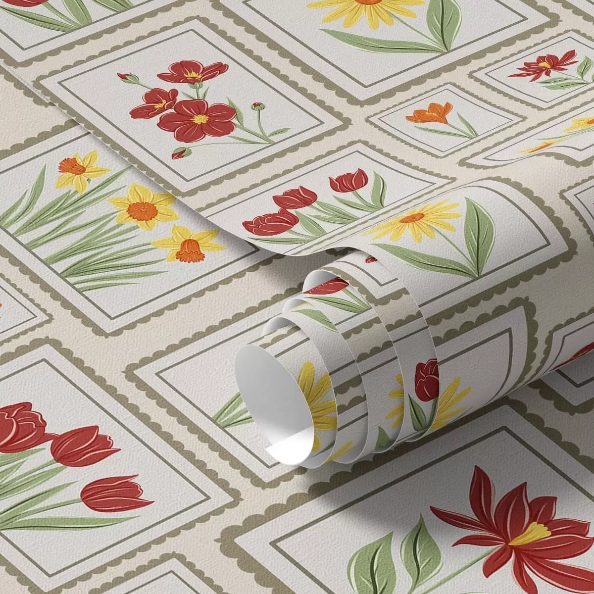 Papel tapiz Ilustraciones florales enmarcadas en tonos cálidos Nr. a01173