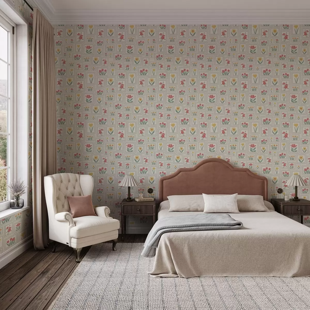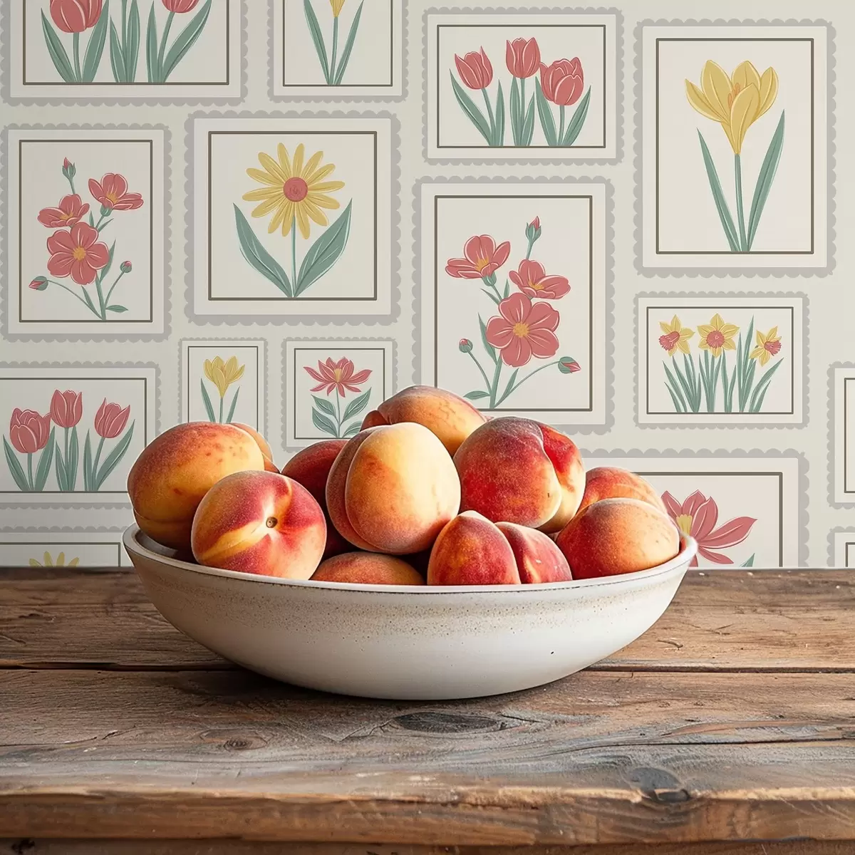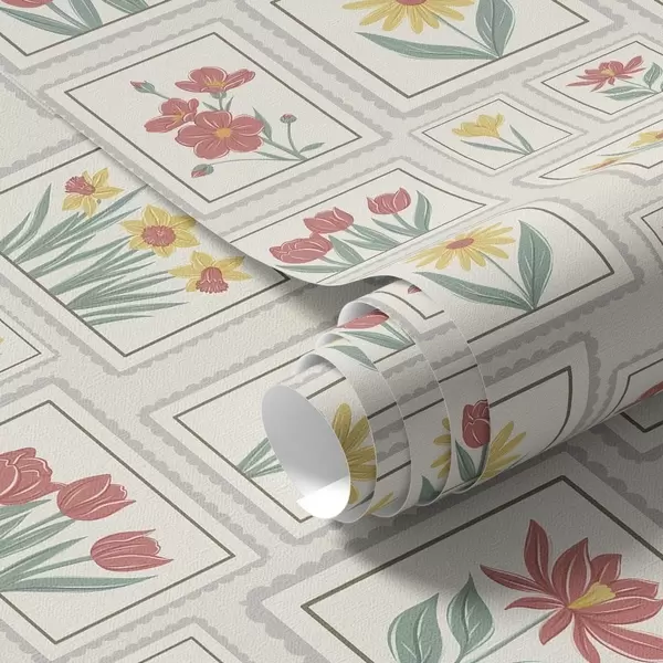 Papel tapiz Ilustraciones florales enmarcadas sobre fondo claro Nr. a01173v1