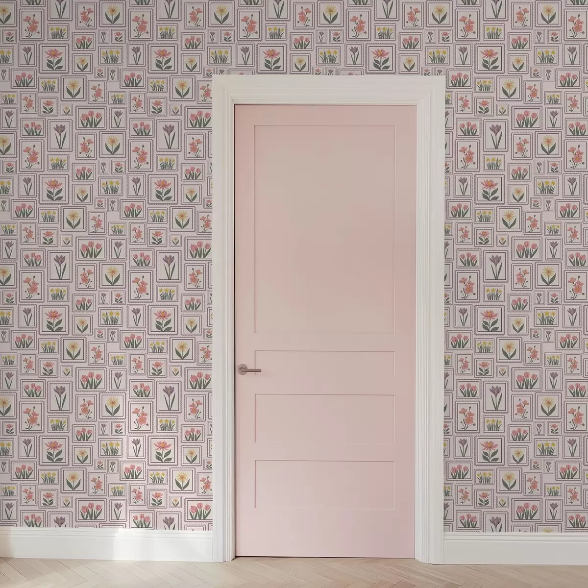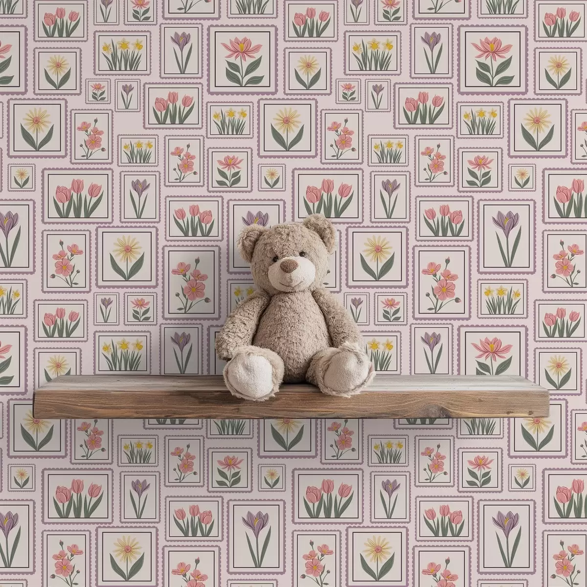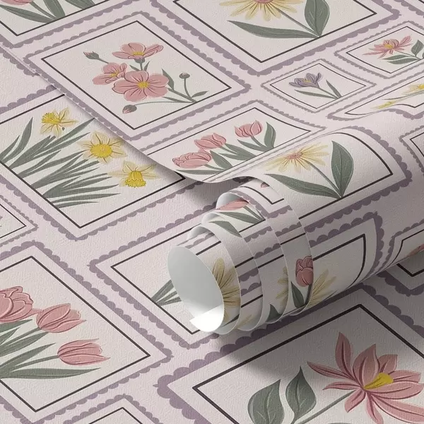 Papel tapiz Ilustraciones florales enmarcadas en tonos lila Nr. a01173v2