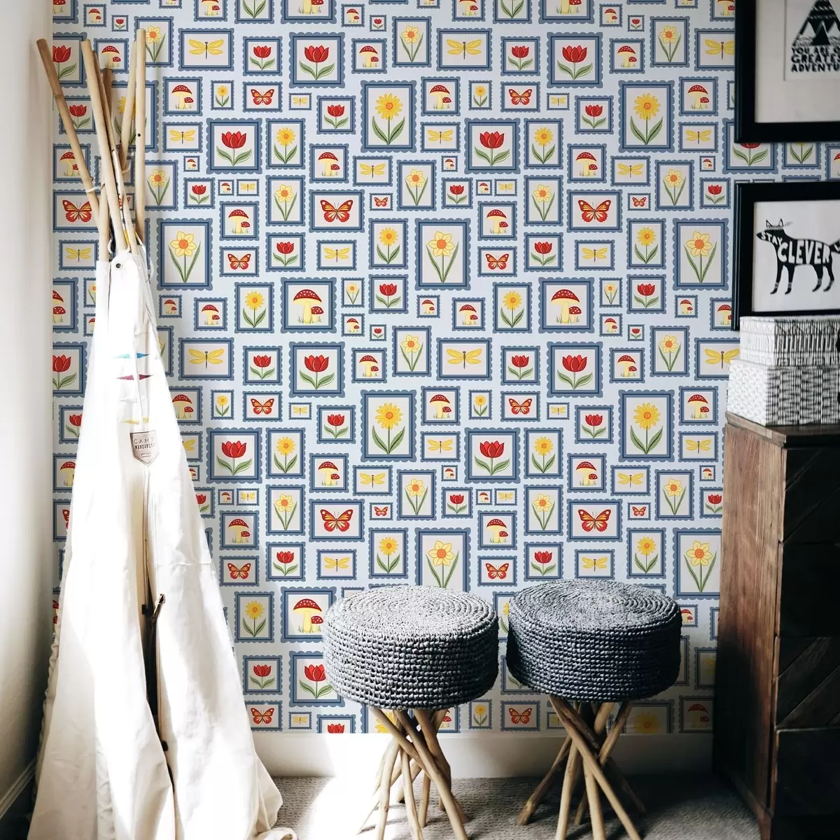 Papel tapiz Ilustraciones enmarcadas sobre fondo azul Nr. a01176