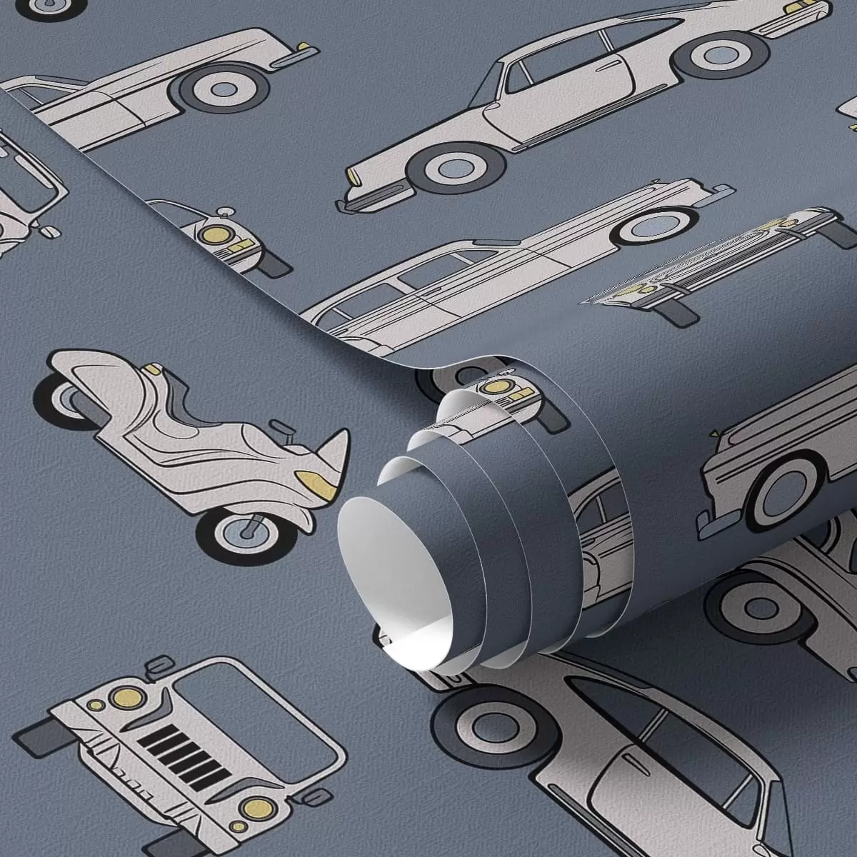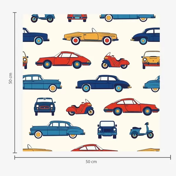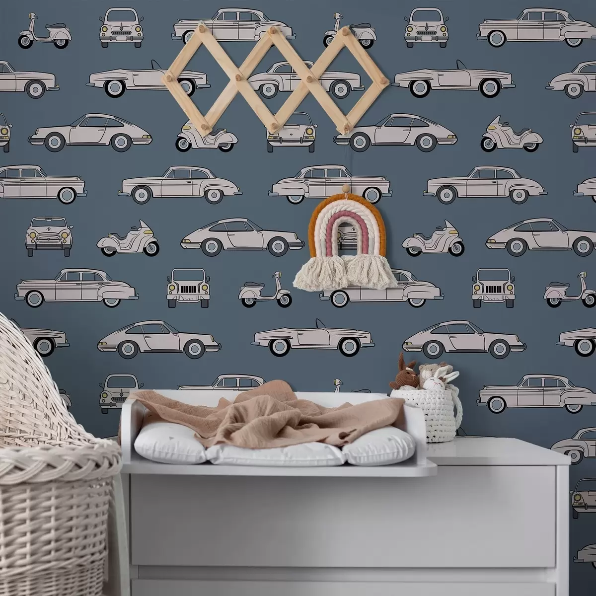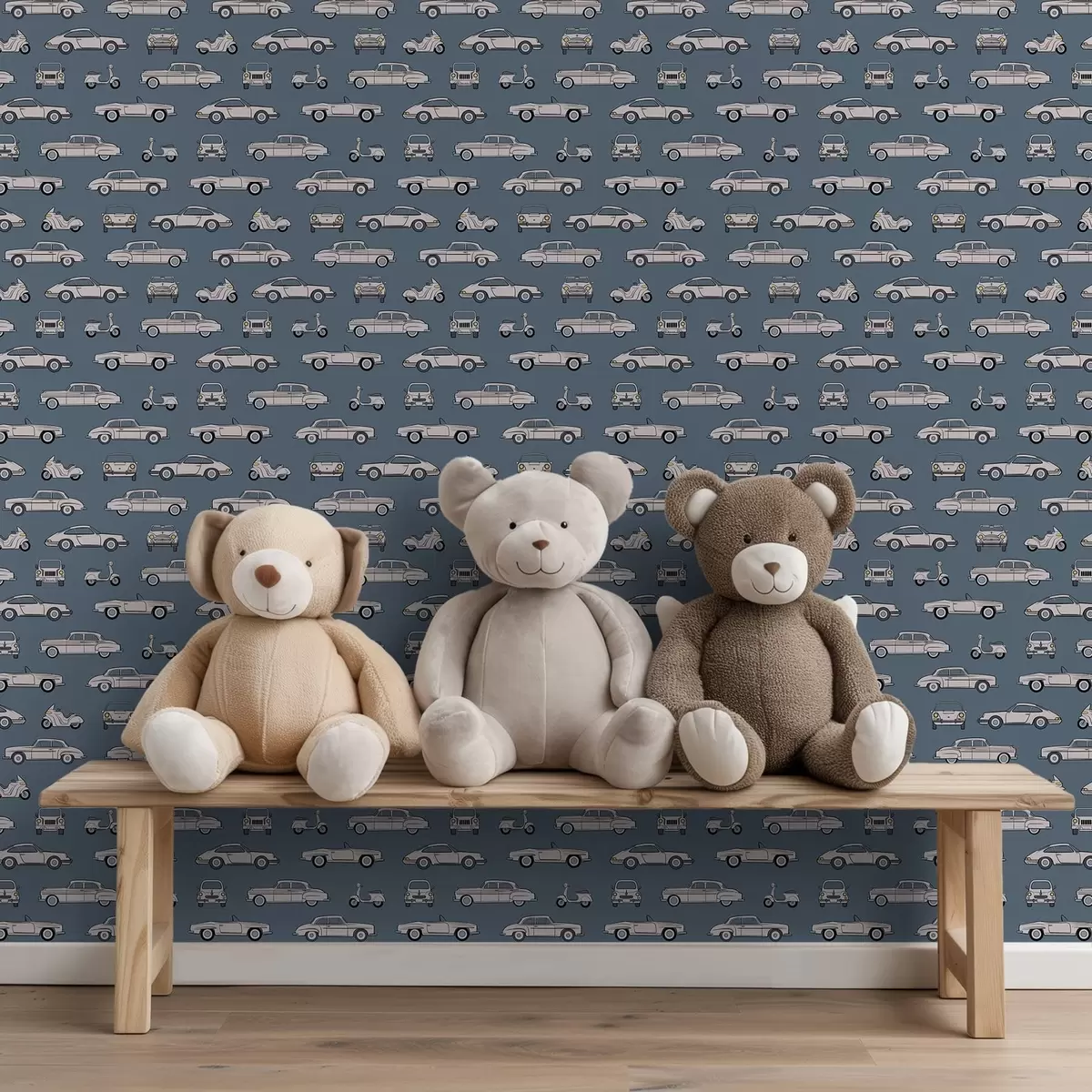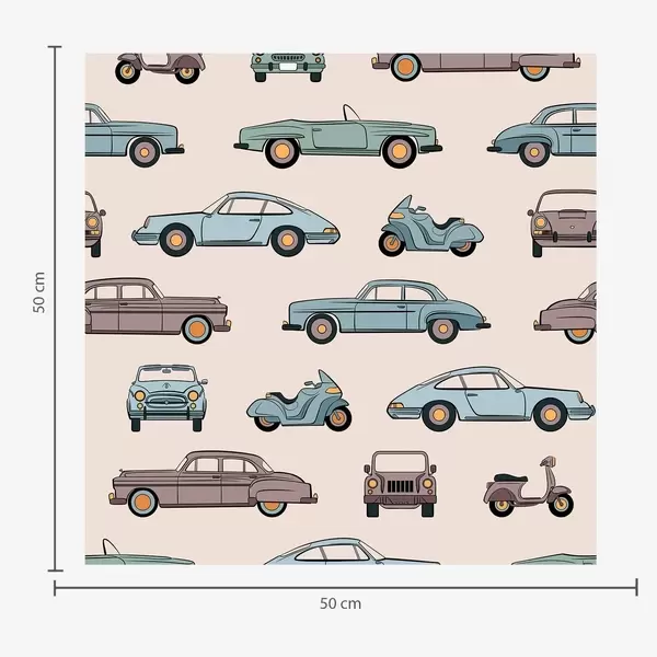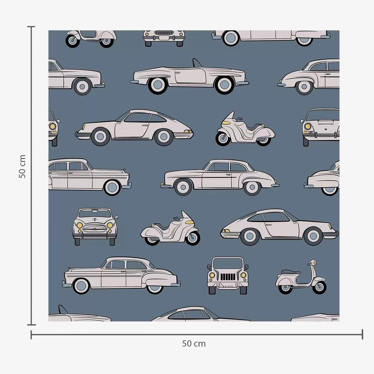 Papel tapiz Coches y motos retro sobre fondo azul Nr. a01178