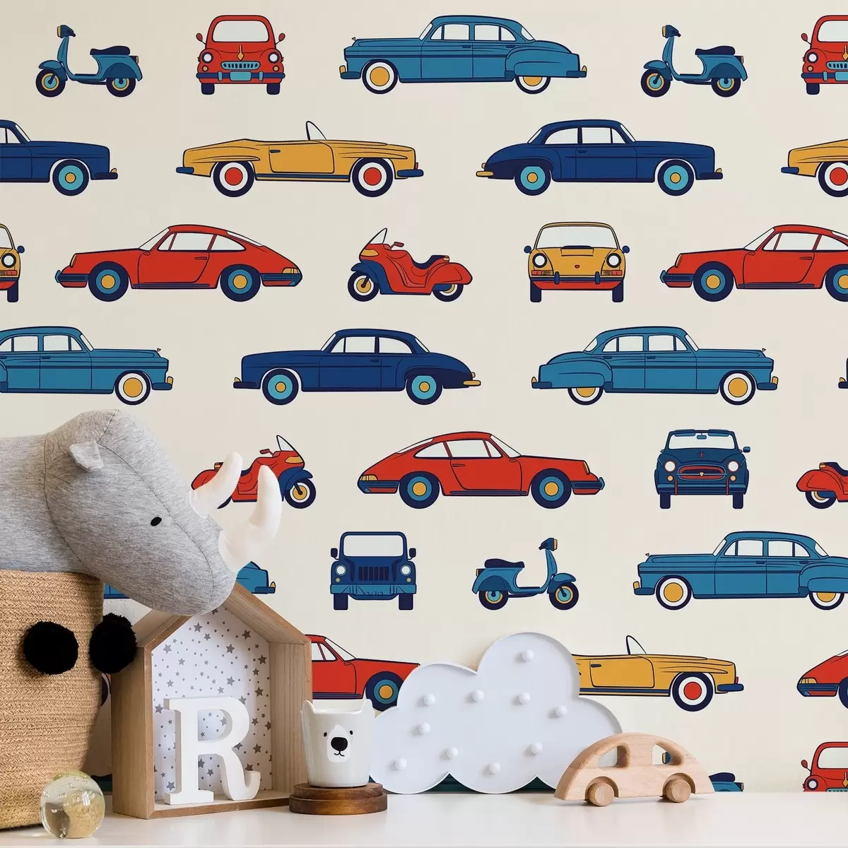 Papel tapiz Coches y motos retro de colores vivos Nr. a01178v2