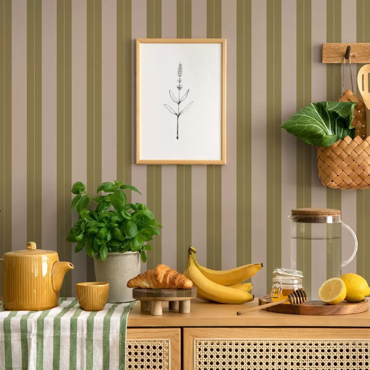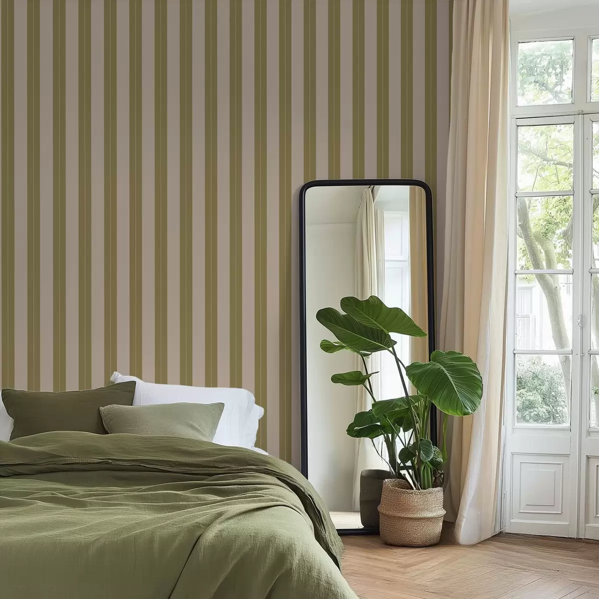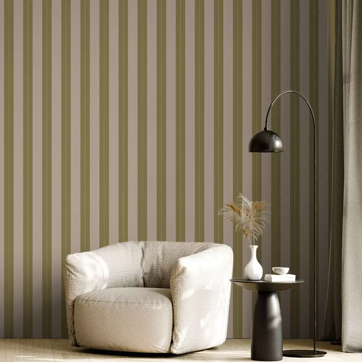 Papel tapiz Rayas verticales en color verde oliva y beige Nr. a01181v2