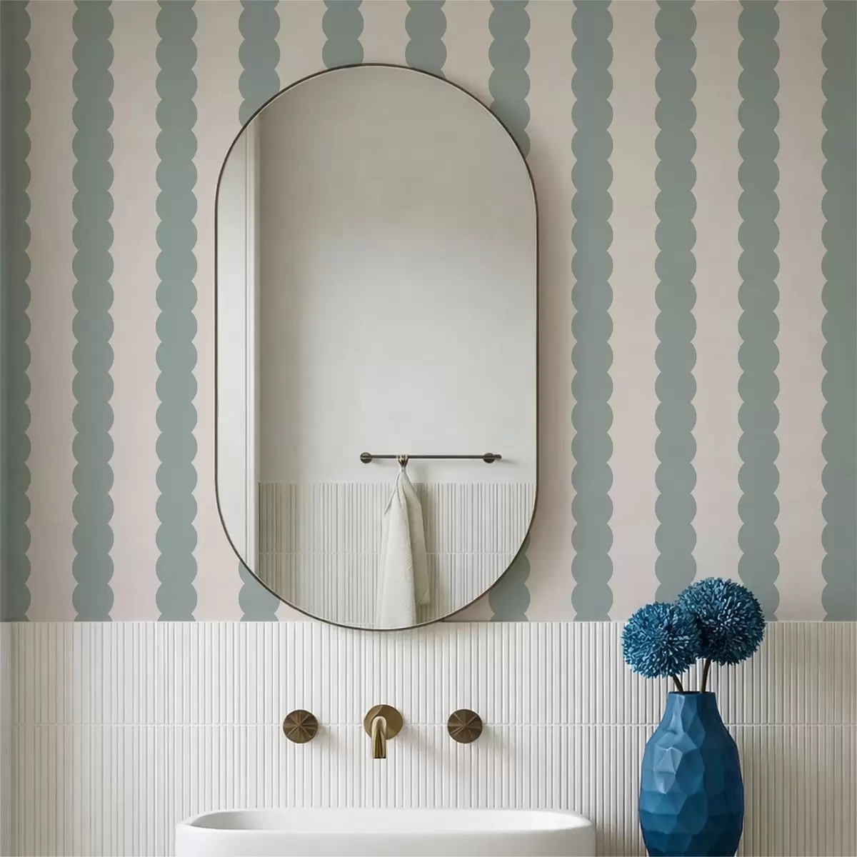 Papel tapiz Rayas onduladas en color oliva, estilo minimalista Nr. a01182v1